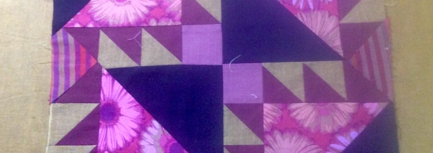 Another quilter was cleaning out her UFOs (if you are not a quilter, please see the post Lexicon of Quilters’ Acronyms) and gave me 12 – 12.5 x 12.5 inch blocks she pieced with beautiful Kaffe Fassett fabrics. They were from a “Block-of-the-Month” club this quilt belonged to and was not interested in making them into a quilt.