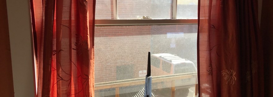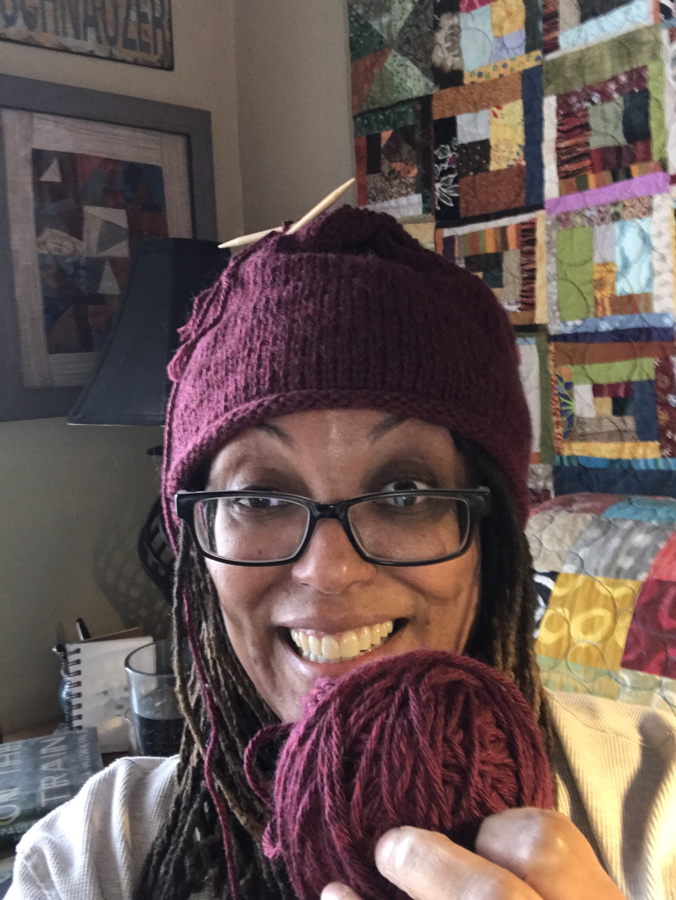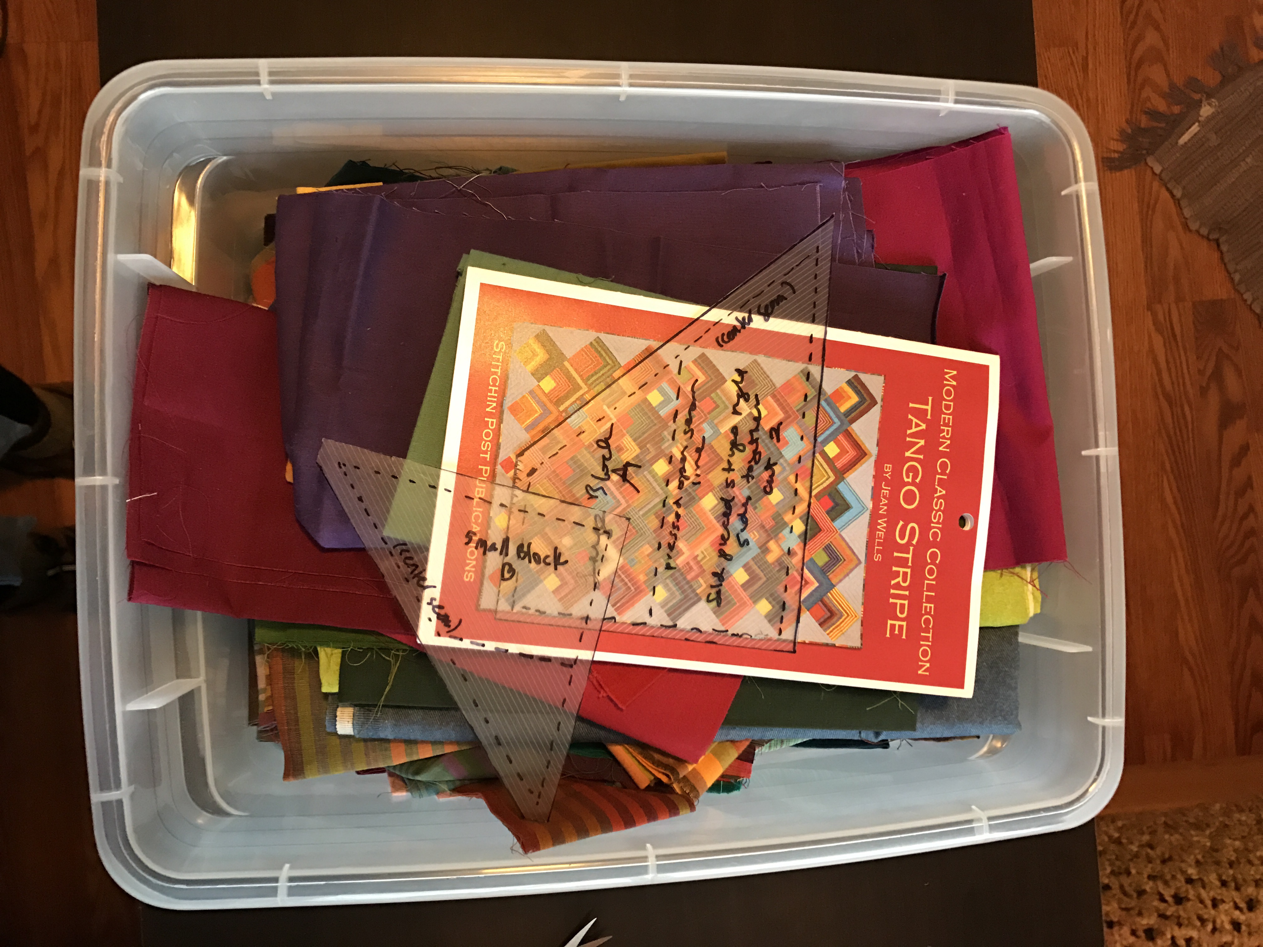 Here is the chair with the quilt “sans Terry”. This chair is actually my favorite chair for reading in front of the window, but Terry has hijacked it and has his quilt and his book (Military History not crafting) in my spot: