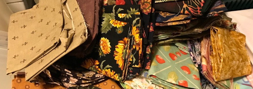 Fat quarter bundles for a future project, individual fat quarters, fat quarters given to me as gifts, fat quarters won at Quilter’s Bingo, fat quarter found at thrift shops, and more, and more and more fat quarters…