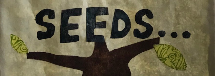 Speaking of seeds and thus nature, I am definitely taking a cue from nature as I slowly work on hand stitching the letters on my Lao Tzu quotes themed wallhanging. As I shared in yesterday’s post, The Backstitch and the End of Tangled Floss, I am finishing up a wallhanging from an appliqué class I took in 2016.