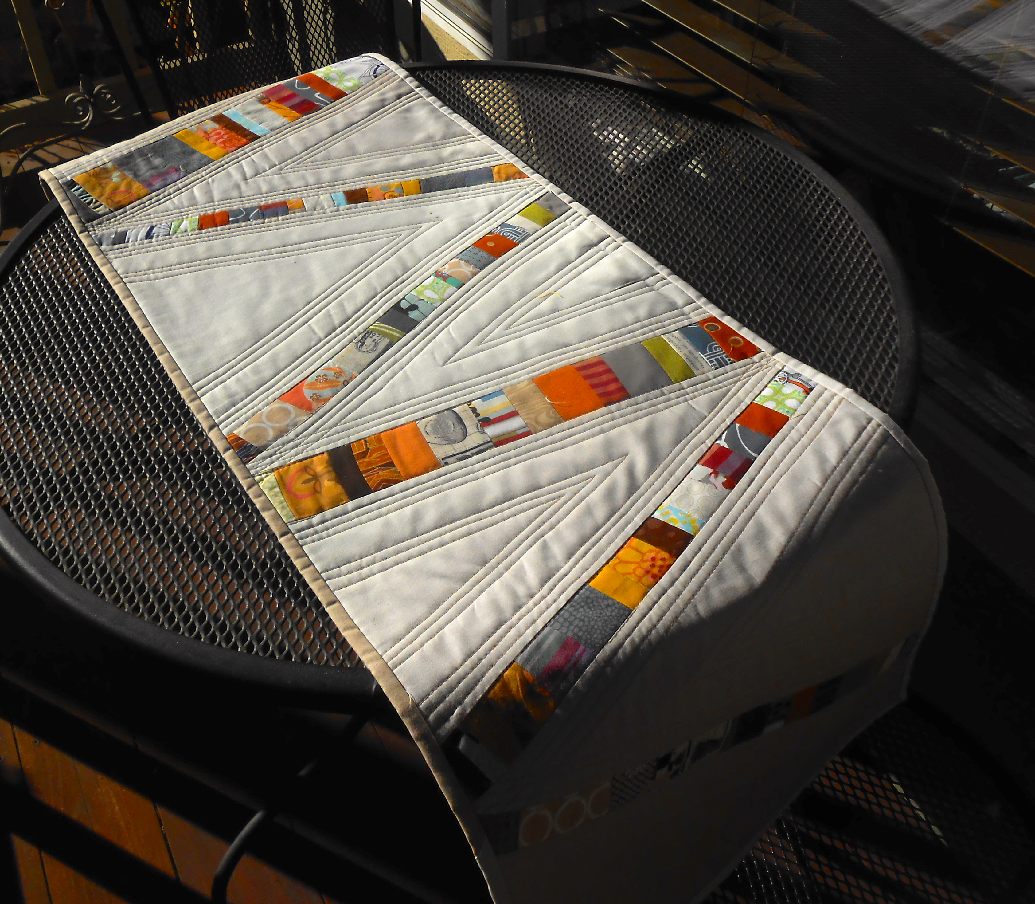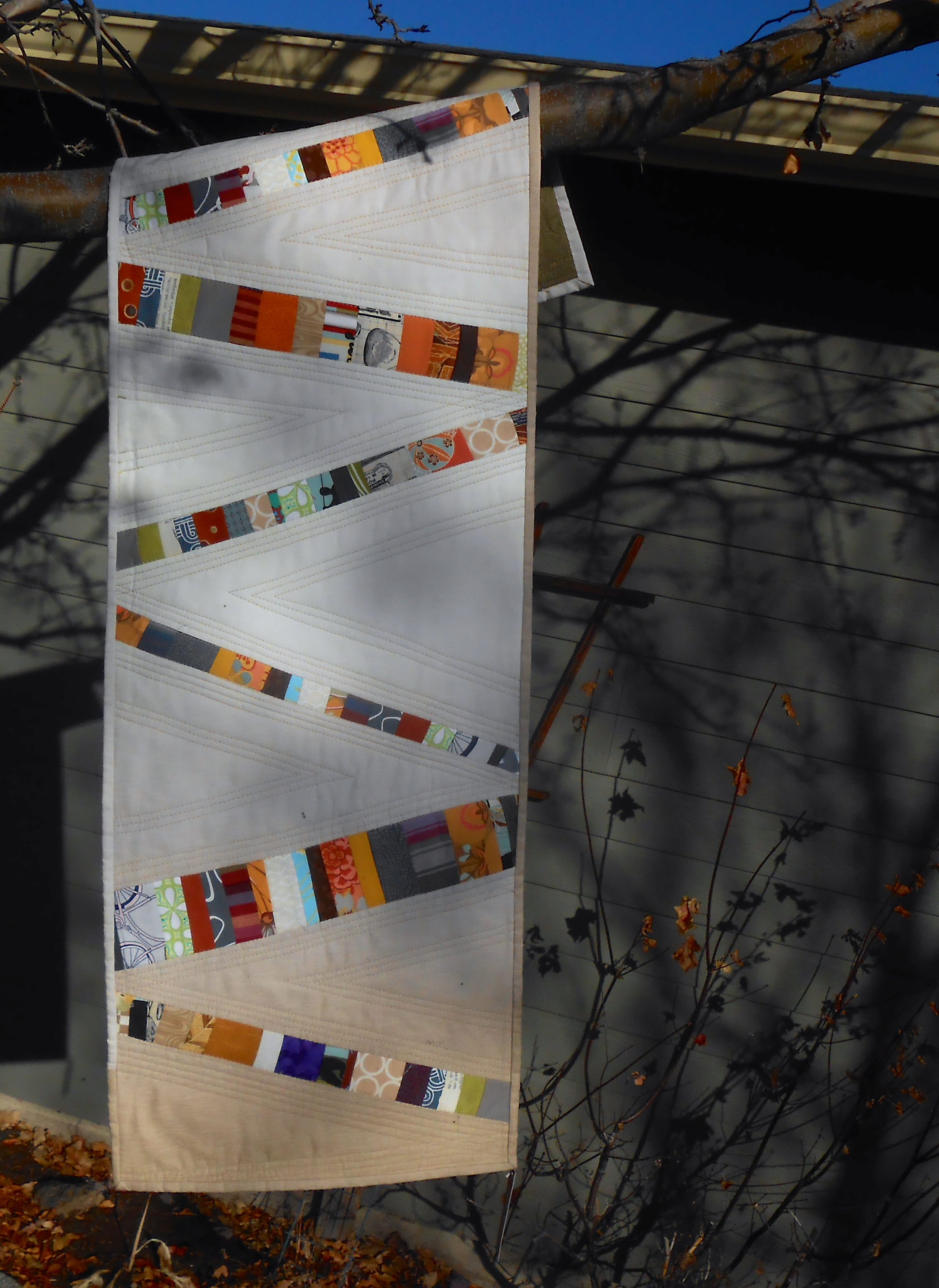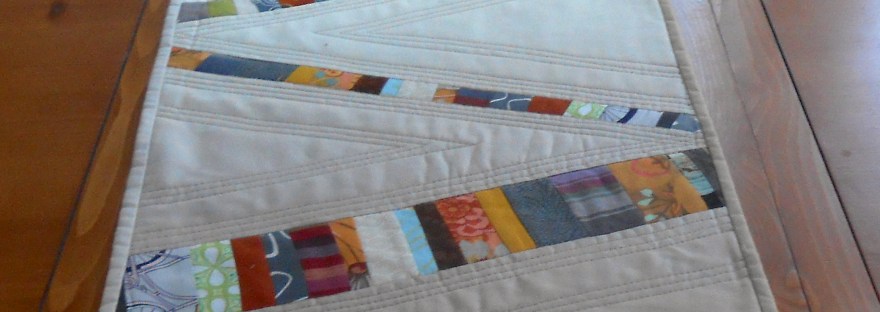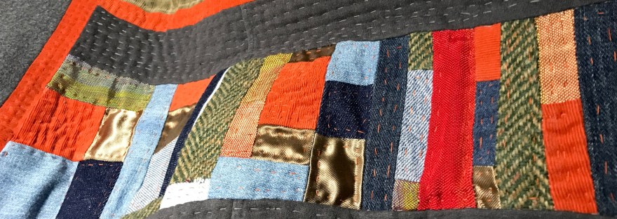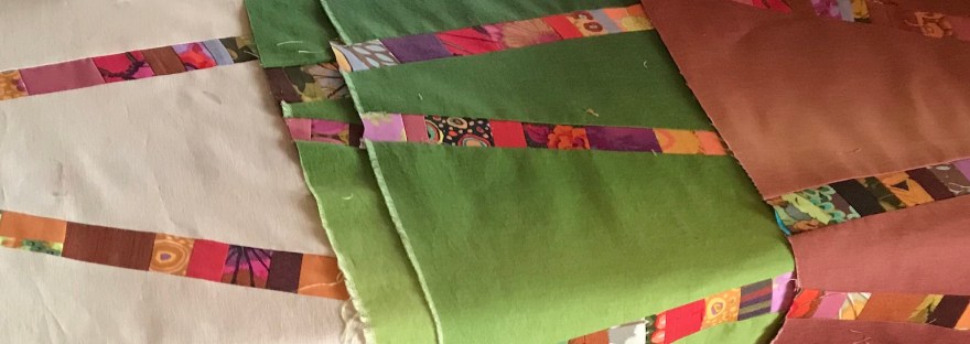 My quilting sister Dana (for more on Quilting Sisters, see posts Quilting Sisters, Part I and Part II) worked on her first improvisational quilt after being inspired by my “log jam” quilts (you can search “log jam” or “log jamming” in my blog’s Search tool if you would like more info on these types of quilts).