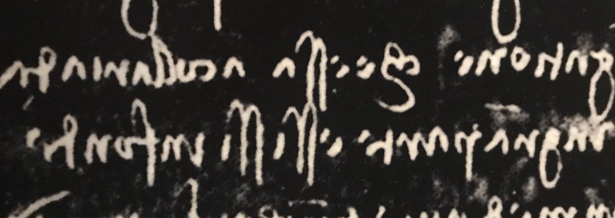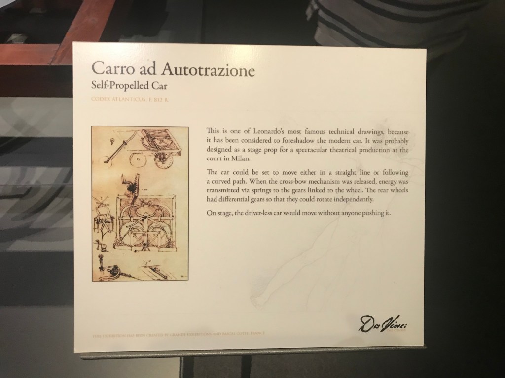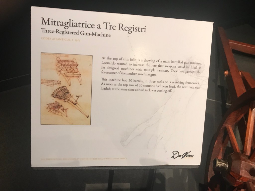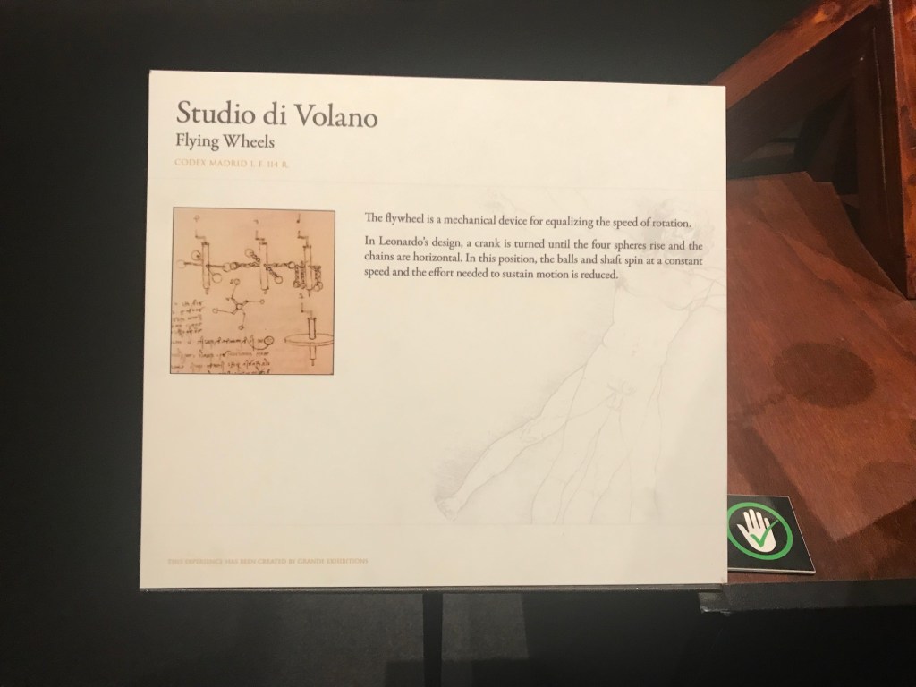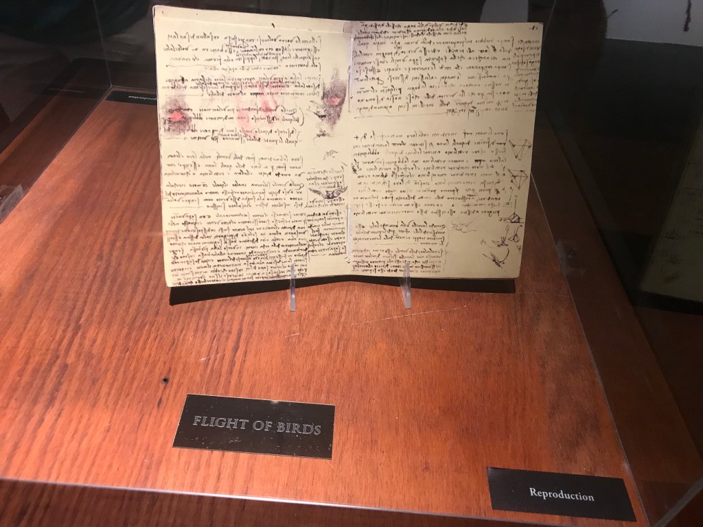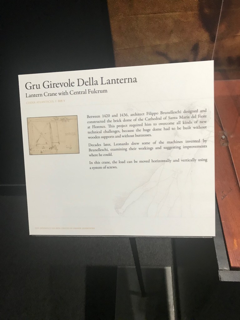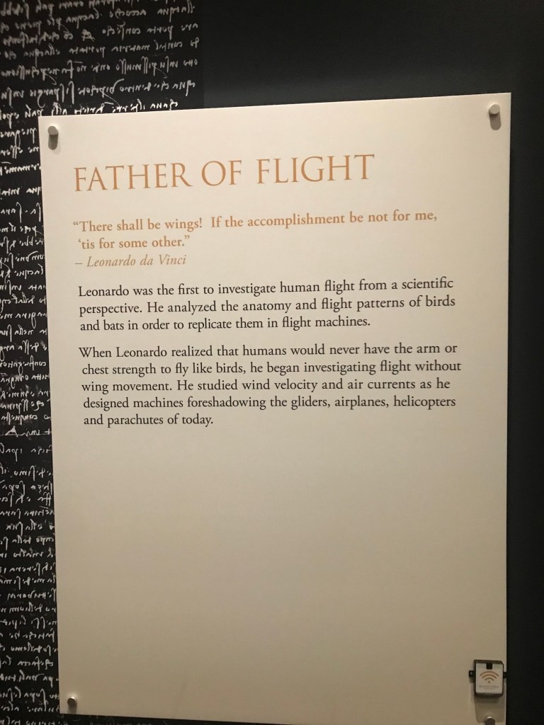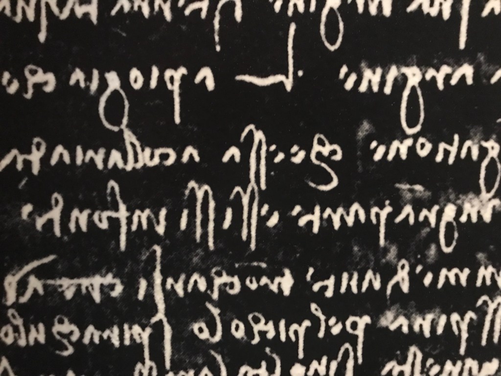 By the way – throughout the exhibit they had enlarged reproductions of da Vinci’s famous backward writing on the walls of the exhibit: