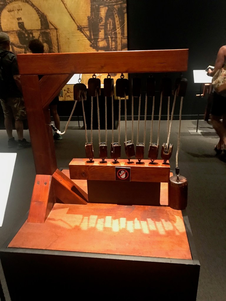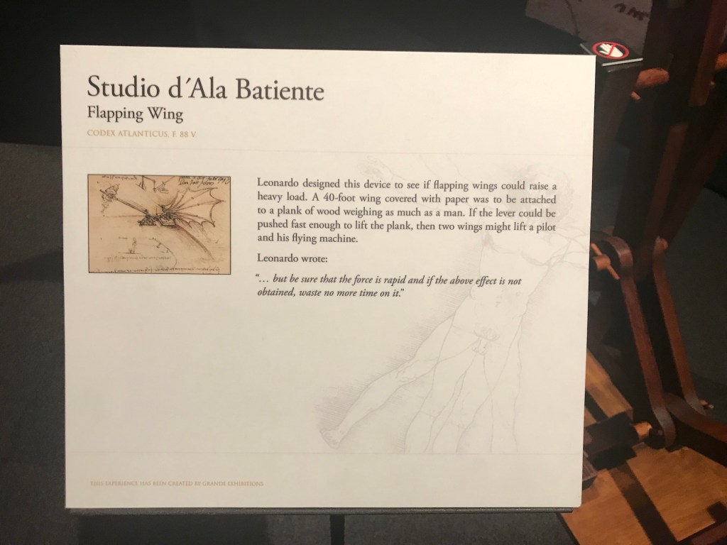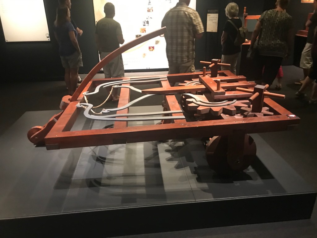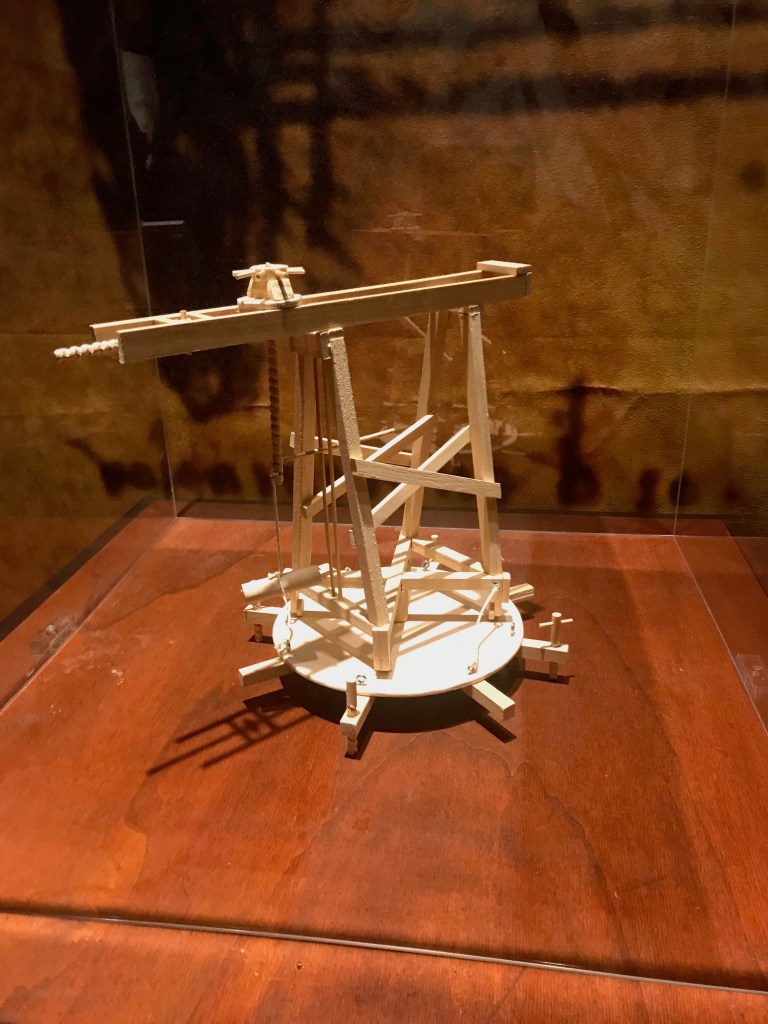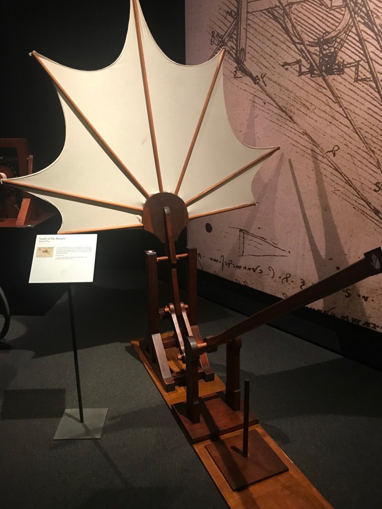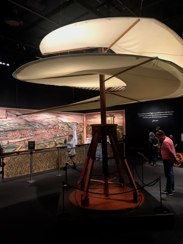 What was most amazing about this exhibit (besides the whole room dedicated to the science and the mystery behind the Mona Lisa) was seeing life size models of da Vinci’s creations from his drawings in his famous notebooks.