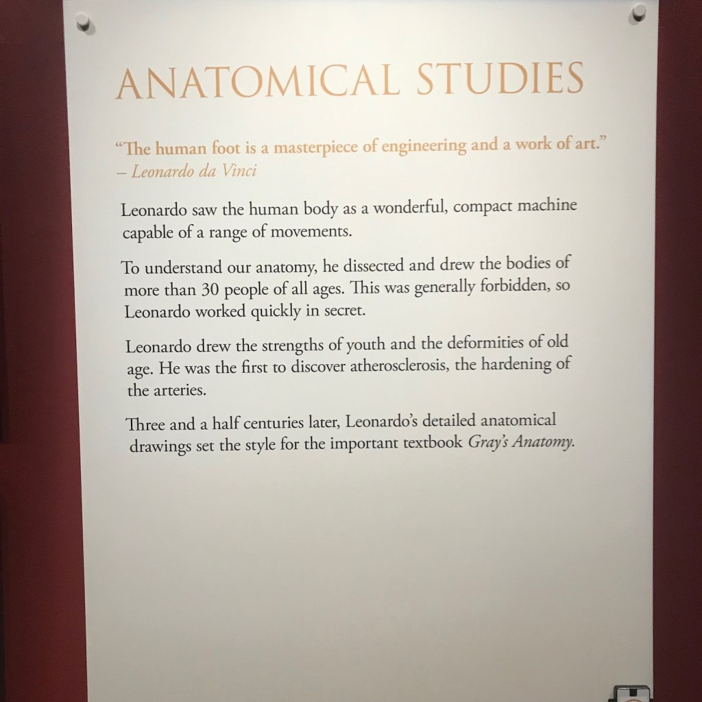 The exhibit also had a section on da Vinci’s anatomic drawings and his famous Virtuvian Man . Here are a couple images from that section: