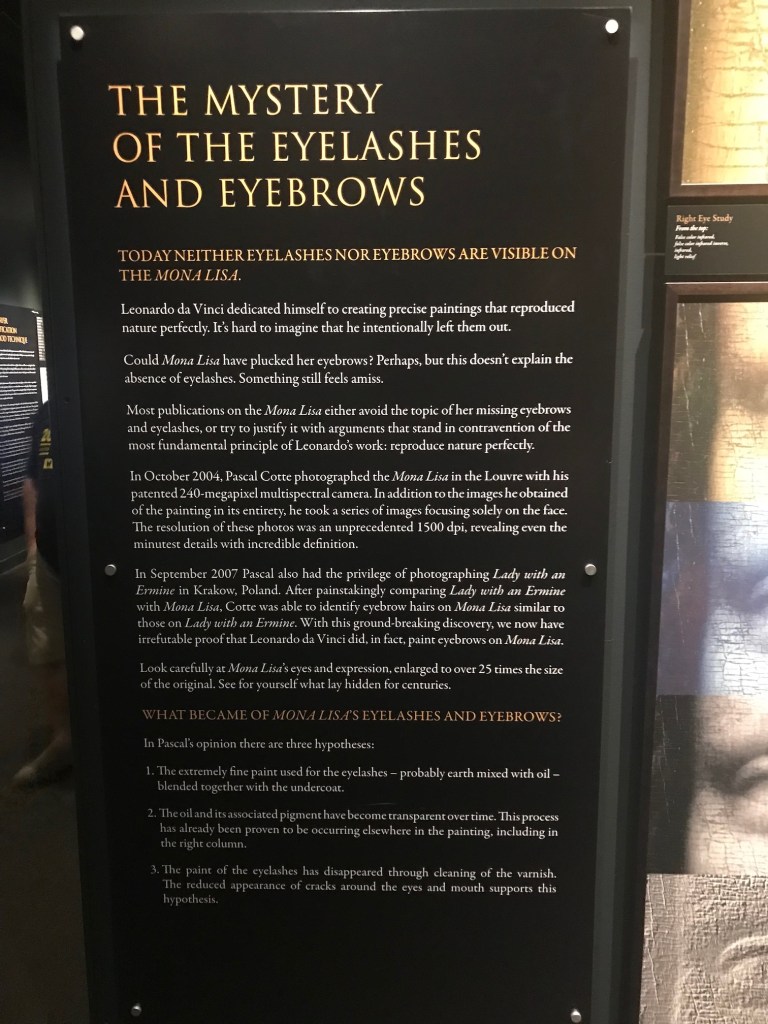 The exhibit also had an amazing section on the mysteries of the Mona Lisa. It was the most crowded section of the exhibit.