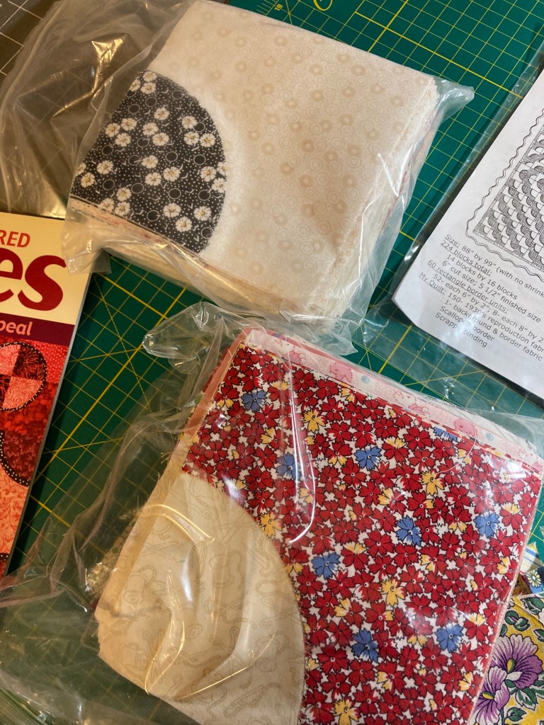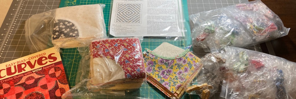 I already have a copy of her book Easy Bias-Covered Curves to help me with the technical aspects of assembling this quilt and finishing up the bias covered curves with all the pre-made bias tape she sent me: