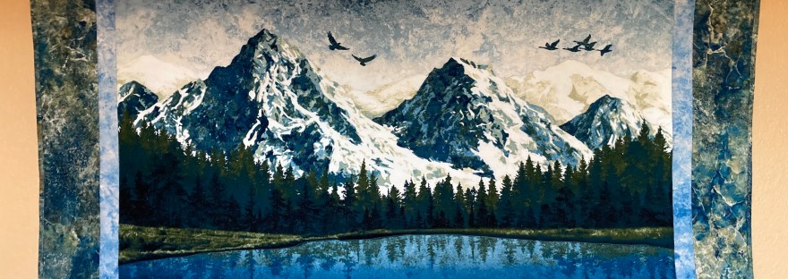 So last year while visiting my Washington state based quilting friends, I picked up a mountain scene themed panel to make a future wall hanging.