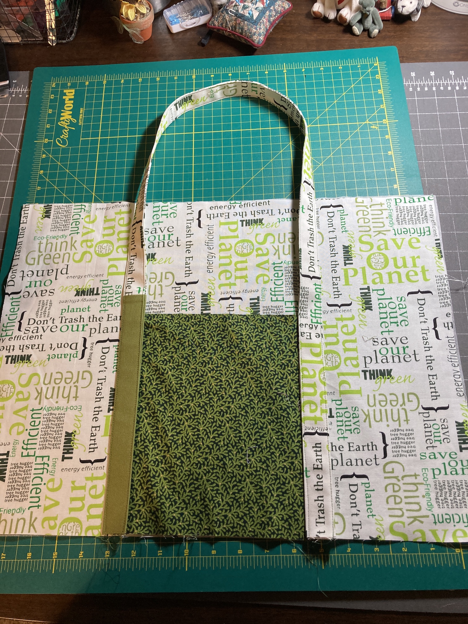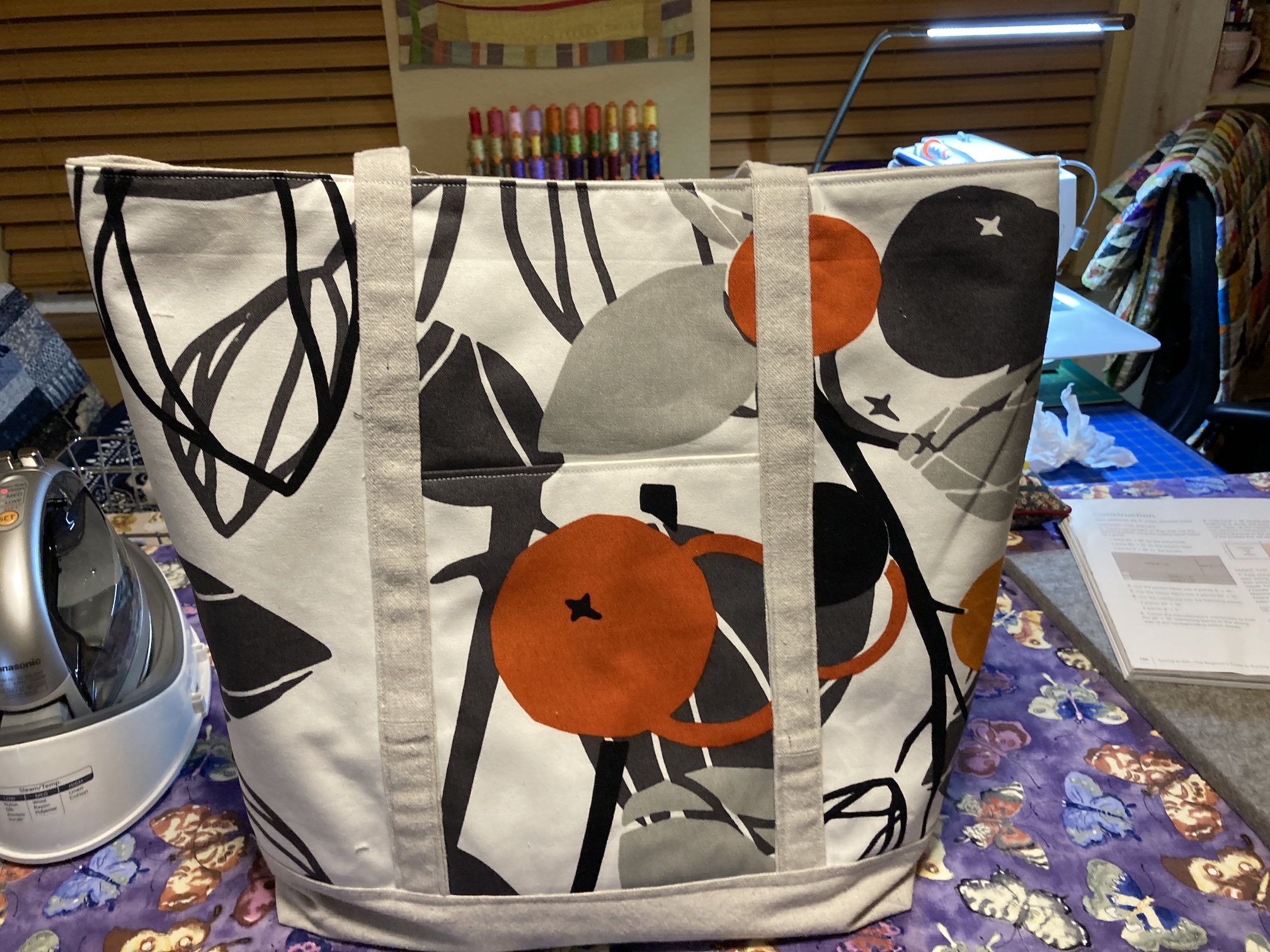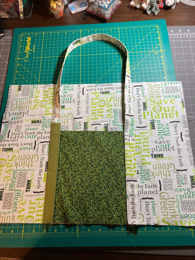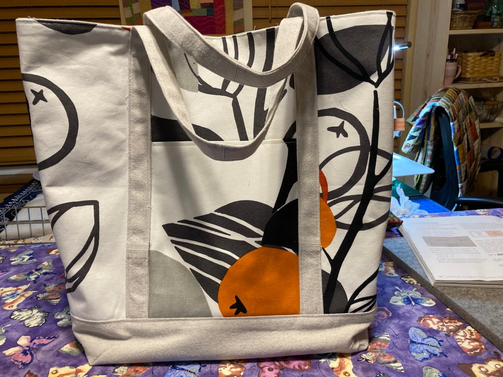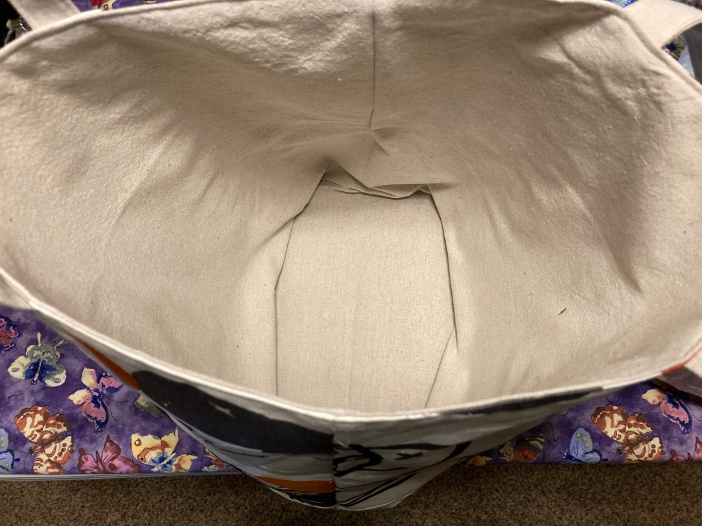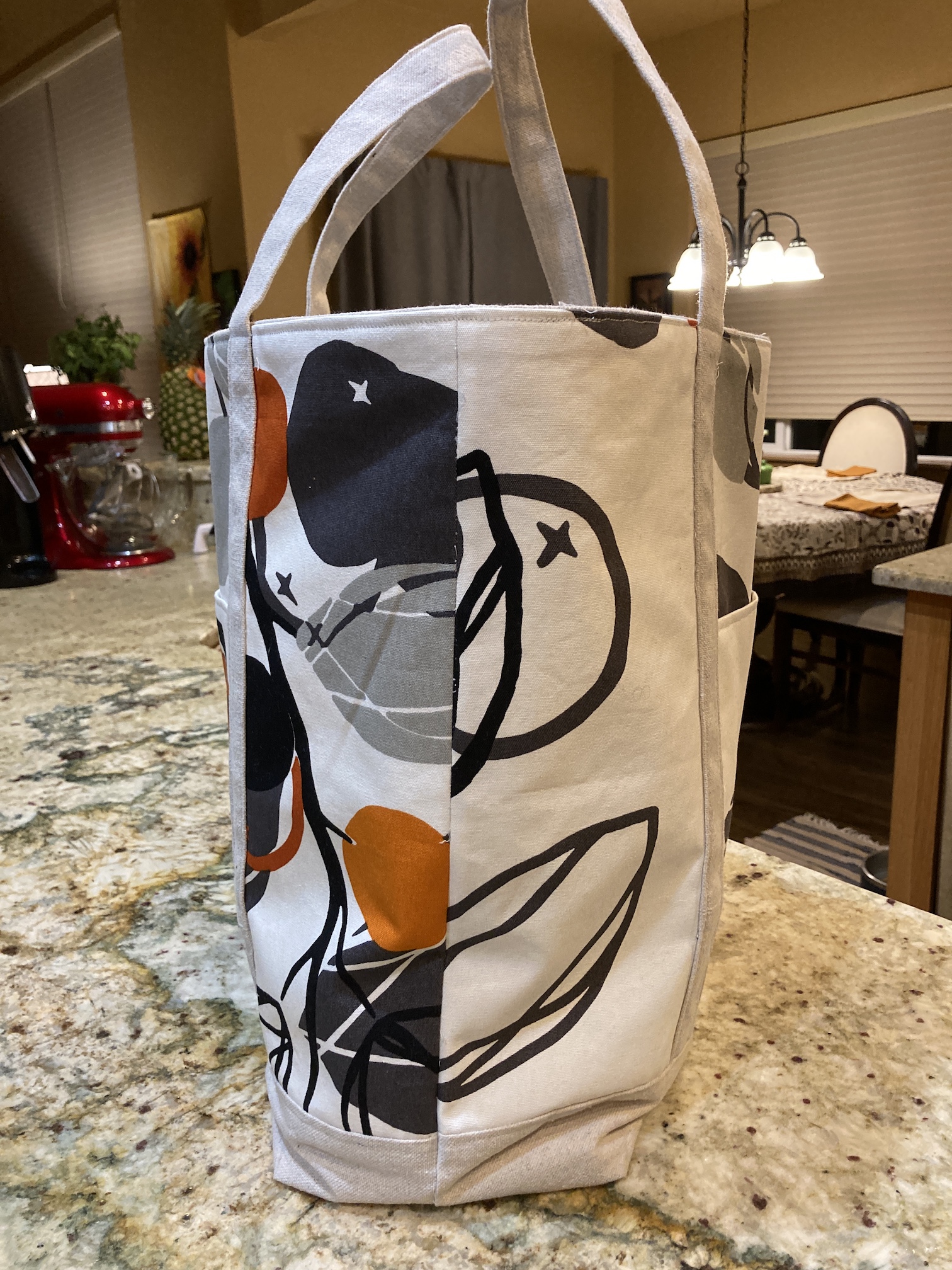 Most recently (couple days ago), I decided to experiment with more “artsy” fabric instead of novelty fabric and made this tote bag: