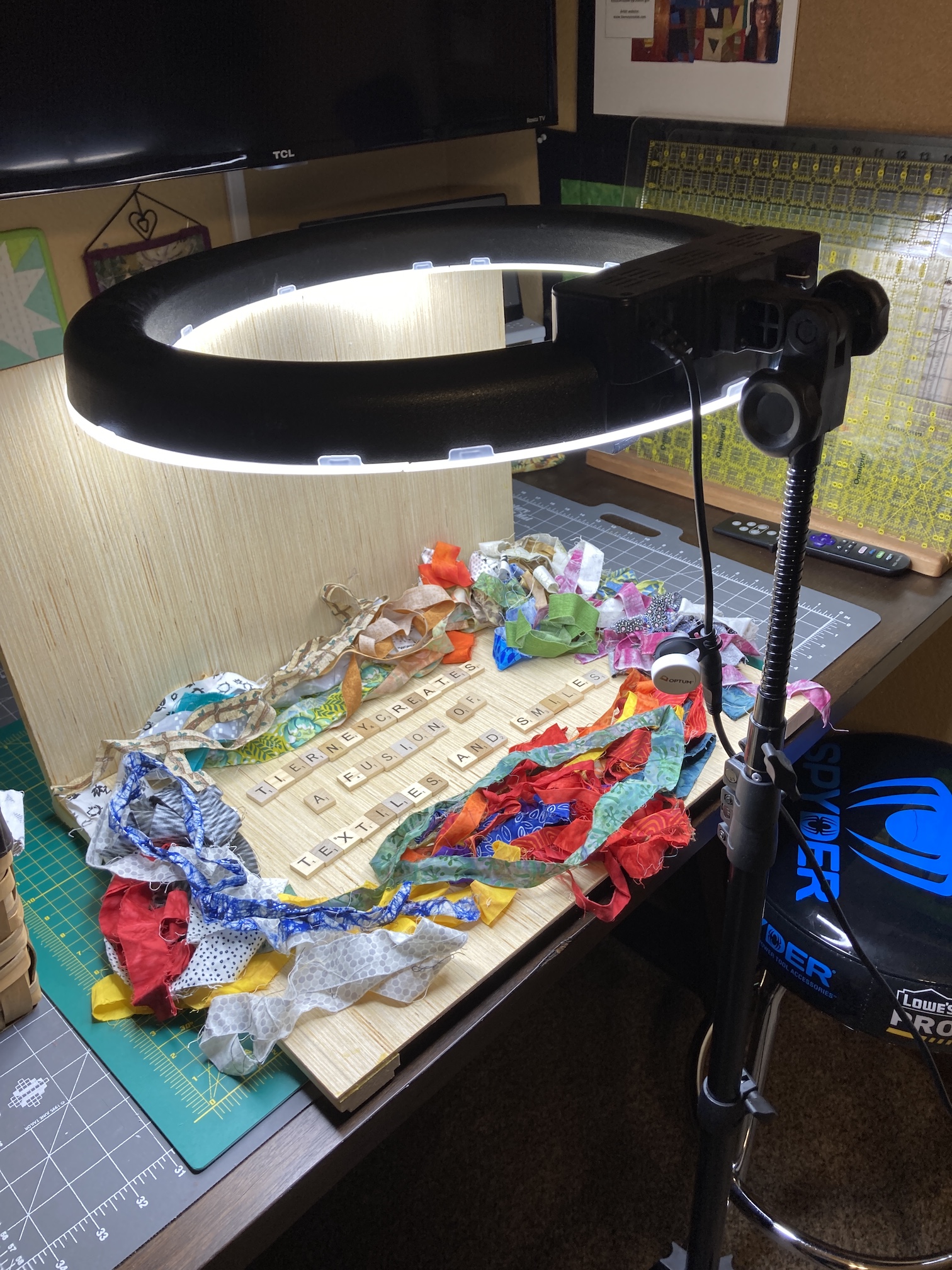For the “textiles” I dug into my basket of fabric scrap strings:
