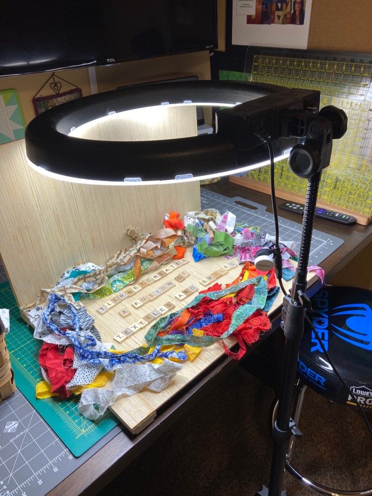 So I came up with the idea of spelling out my company name (tierneycreates) with my tagline (a fusion of textiles and smiles) in Scrabble letters, and adding some textiles!