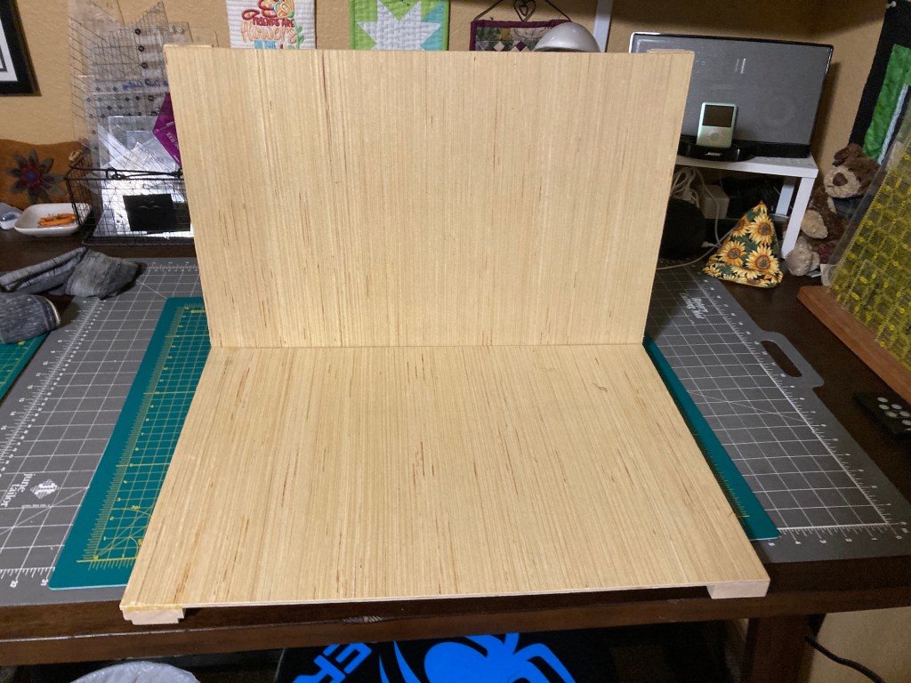 Now that Tierney had cordless iron she had more flexibility on where her iron could be located, so John (again I mean Human John as Beastie John could not have handled the tools involved which are bigger than him…) built her a 2 foot by 4 foot ironing table for her studio.