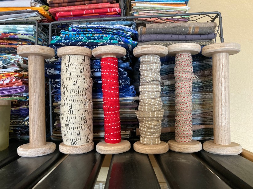 For now I thought I would show you that he has taught himself to make wooden spools, which I can use for my decorative ribbon.