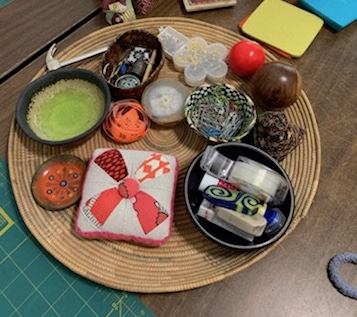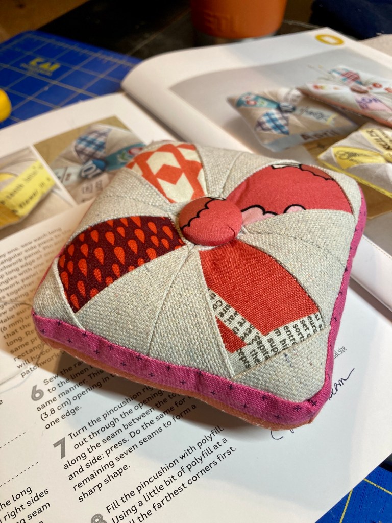 She sent me a photo of the pincushion in it’s new home in her sewing room: