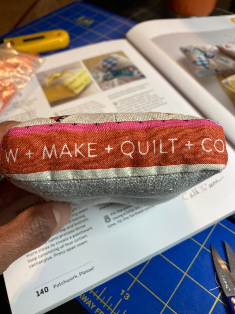 I’ve been obsessed lately with making non-quilt items such as tote bags (see post Tote, Tote, Tote Bags) and pincushions (a future post); and love my new book by Ayumi Takahashi – Patchwork Please which features lots of fun things to make: