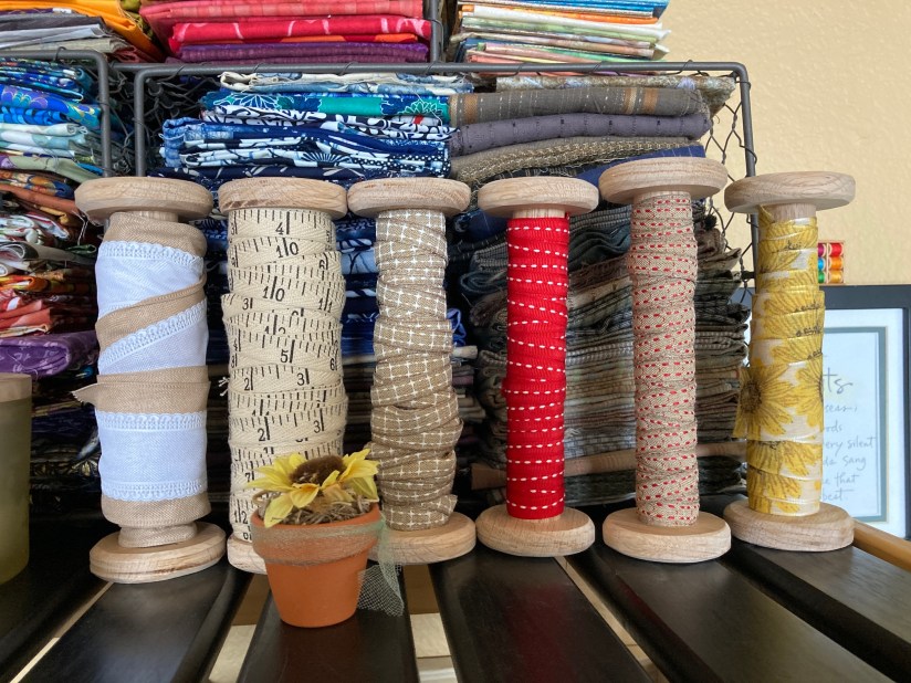 The spools are around 5.5 to 6 inches in height and I think they add a decorative touch to my studio!