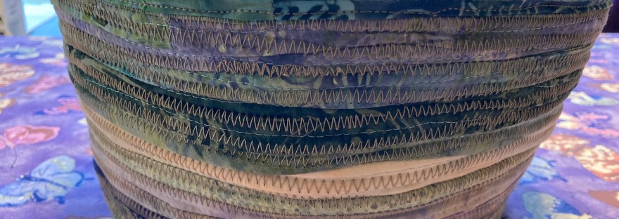 Here are images from my recent creation of these baskets – I like to call the process “throwing pottery on the sewing machine”: