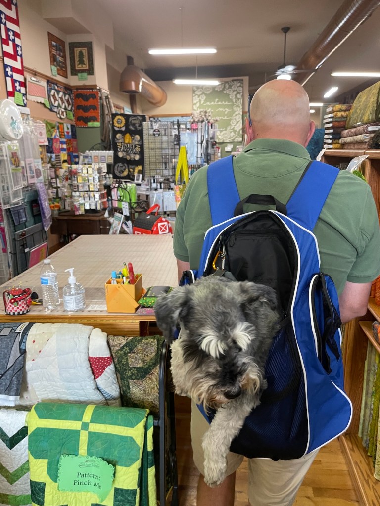 On day three of the shop hop my partner John and Mike the Miniature Schnauzer joined me and we traveled to the last three shops I need to complete my passport Ruth’s Stitchery, Sew-Ciety, and Sew in Tune:
