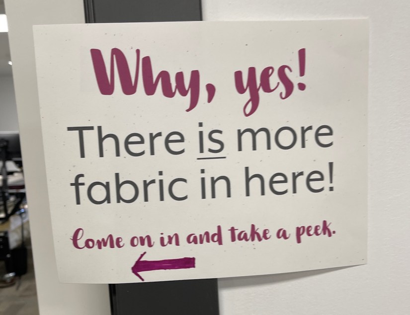 Our first stop was Ruth’s Stitchery in Colorado Springs, the shop we attempted to visit on day one of shop hopping but they closed at 3:00 pm. This is also the shop that is next door to a woodworking shop: