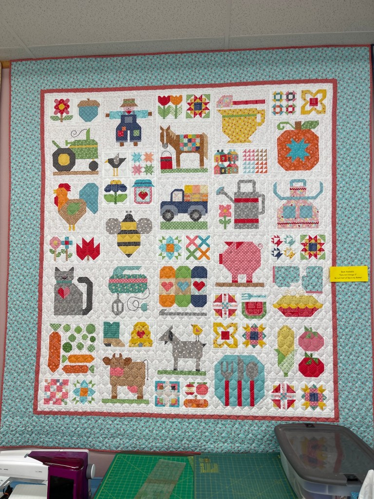 As you see in the photos above, they had two versions/interpretations of the shop hop quilt using each of the large panels. I ended up buying the patterns as I really liked their designs (each shop that created an interpretation/design of how the shop hop quilt should look, also sold the pattern).