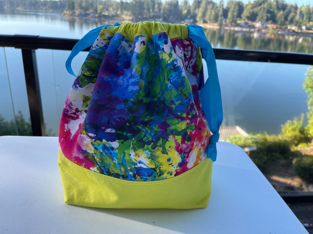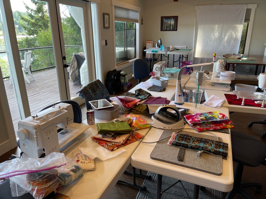 “Drawstring-bagalicious” was the best way I can describe a small quilt retreat I attended at a beautiful location in Shelton Washington in August 2021 with my friends J and D where we ended up making drawstring bags for 3 days!