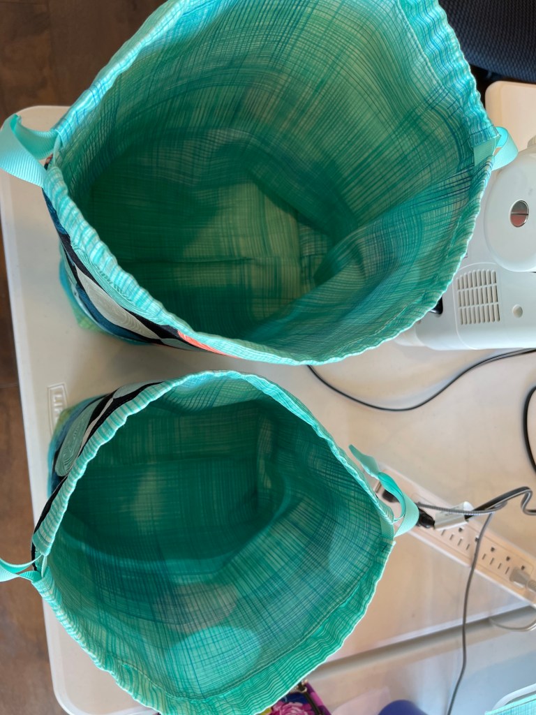 We even made the same bags when we’d seen another’s completed drawstring bag and want to make it also (any everyone was so generous with sharing their fabric and our dwindling supply of interfacing).
