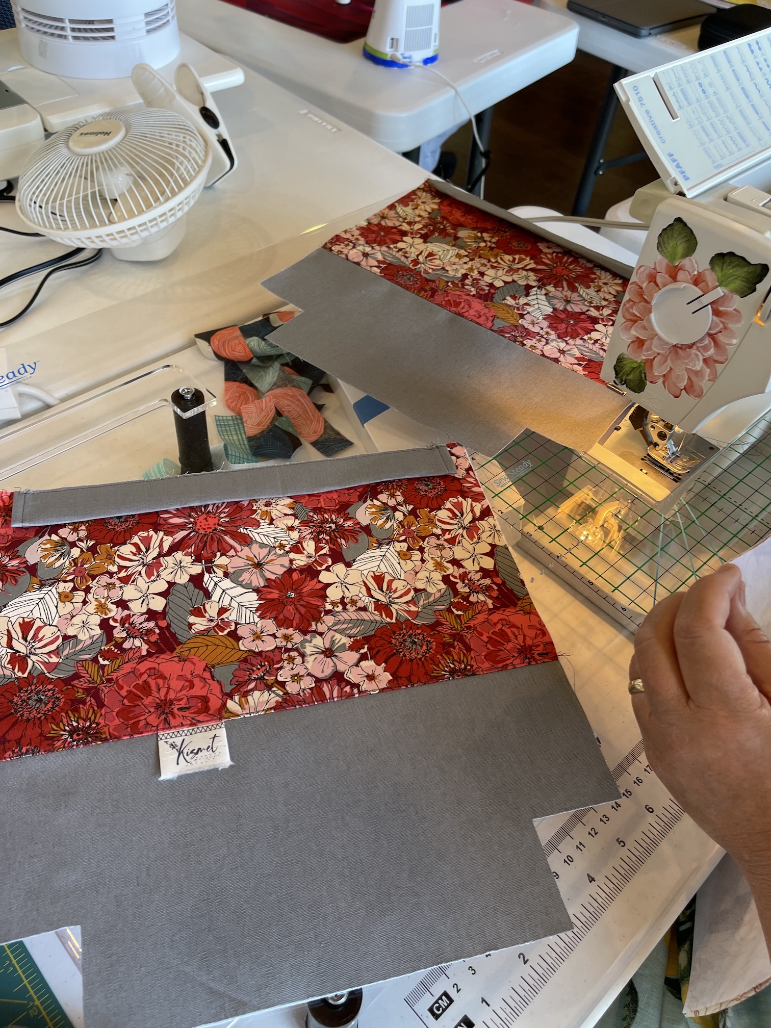 It was cluttered at times (this is what happens when you get a bunch of crafters together) but here are some scenes from the quilt retreat center (including while creativity was in progress):