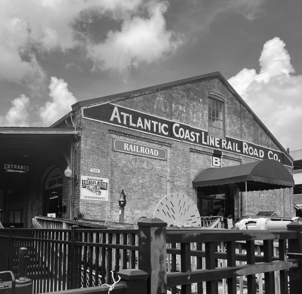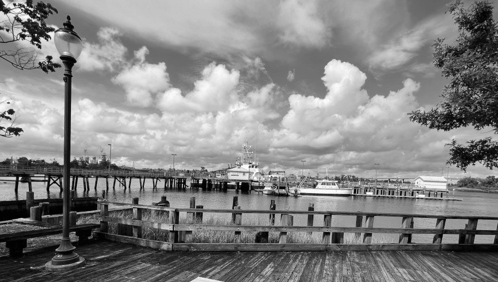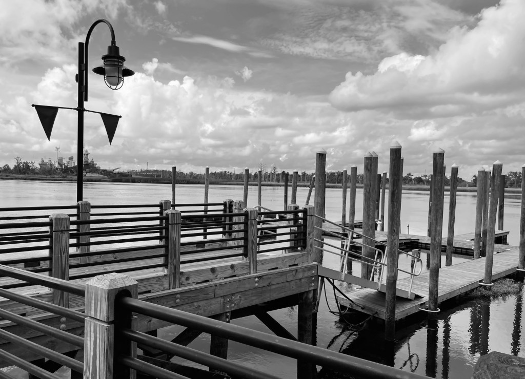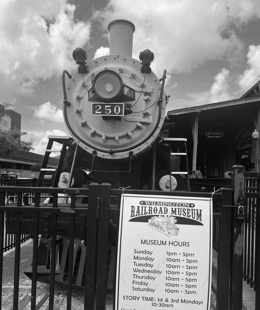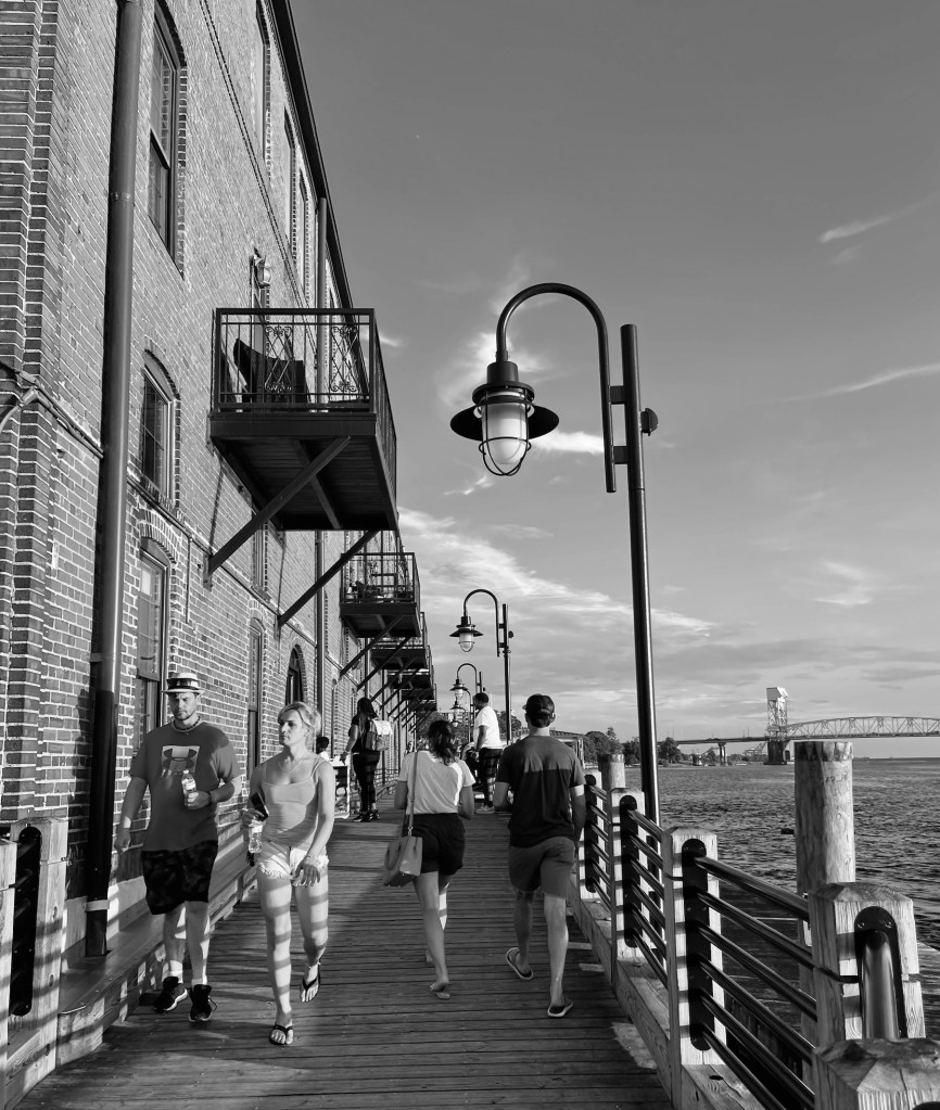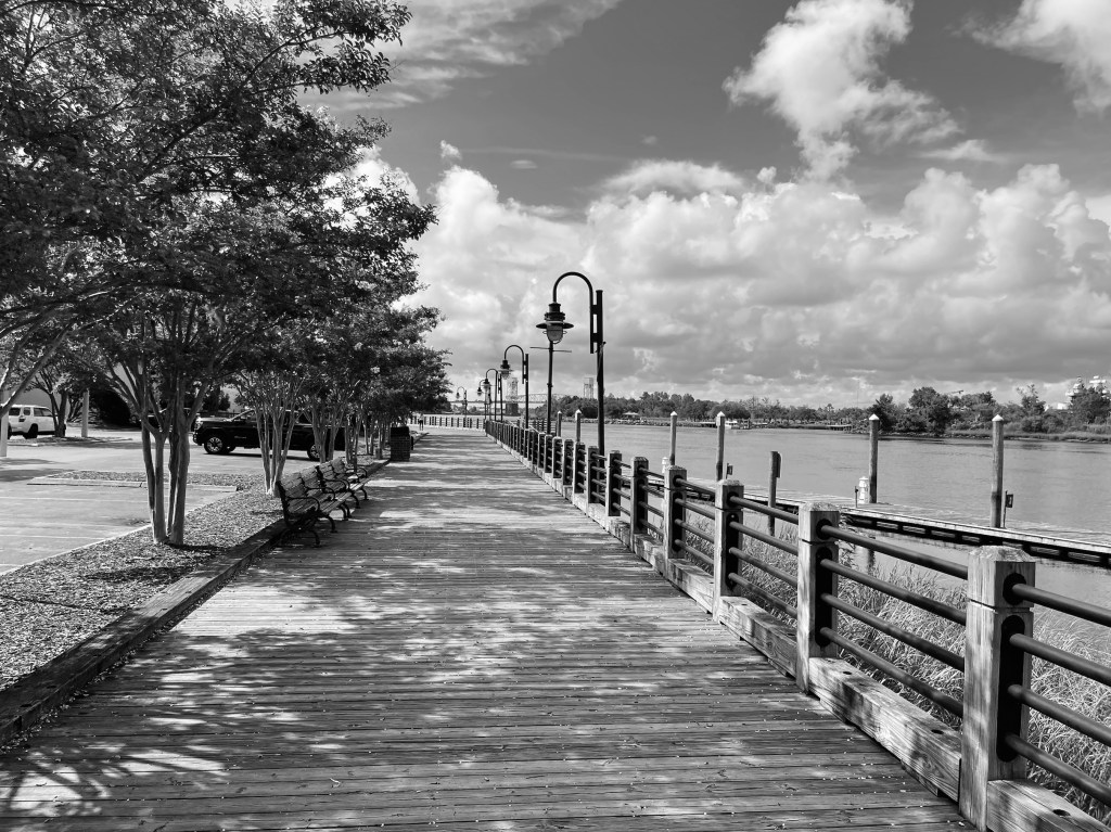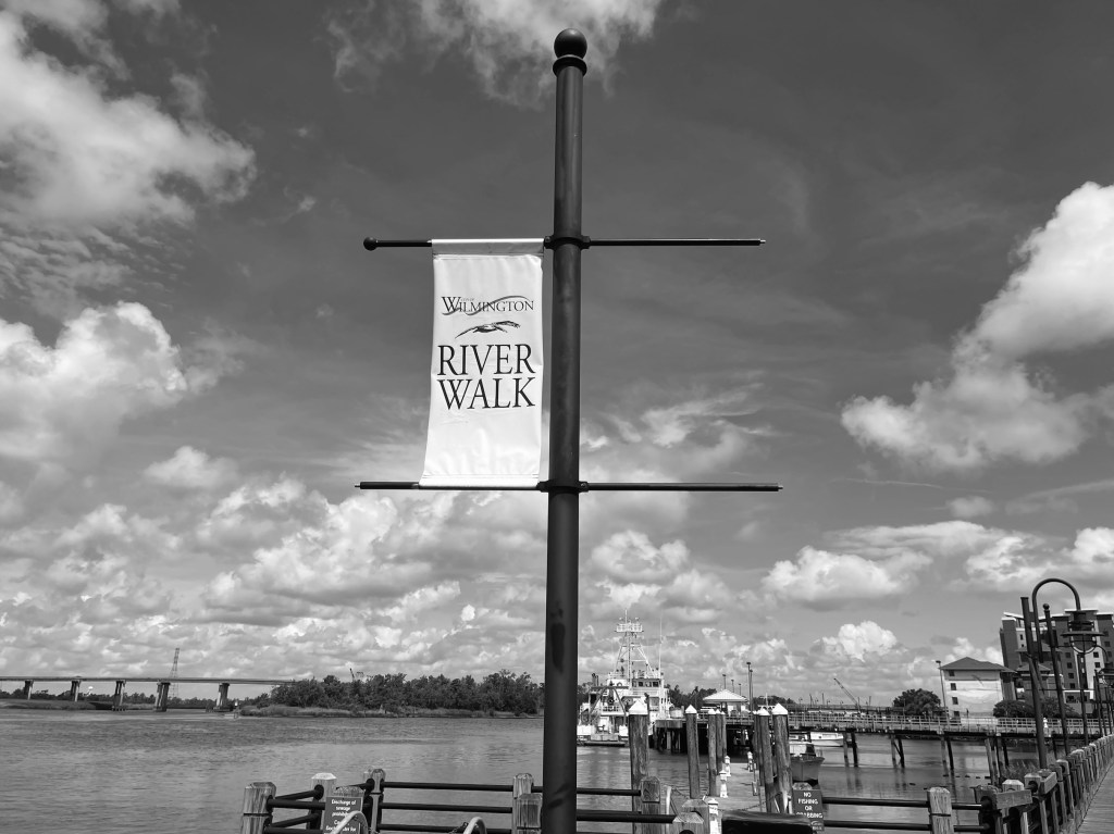 We stayed at the Embassy Suites on the Wilmington Riverfront, and each morning I went on a walk along the river to explore and take photos, many in Black & White. As some of you might remember I like to pretend I am a photographer and do B&W photoshoots (see my blog post category Life in B&W if you want to see more of my delusional photography…).
