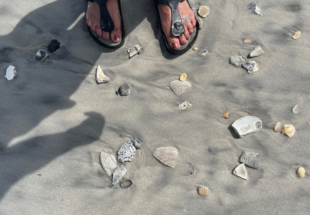 And yes I have not been landlocked so long in Colorado that I thought the rock (with red arrow) was a seashell – ha! It was just a cool rock I found on the shore that wanted to come home with me!