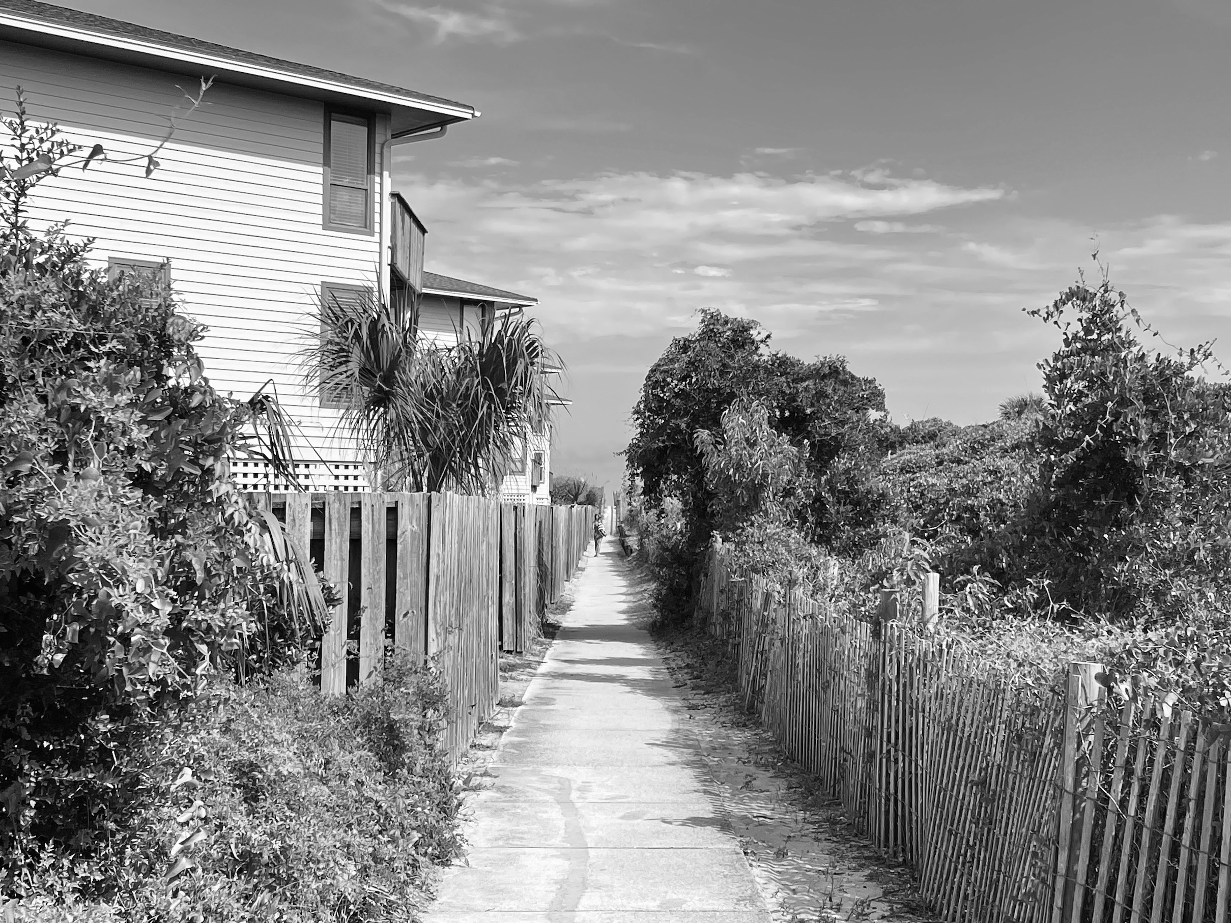 In yesterday’s post I provided a little preview with this B&W photo I took after we parked our rental car and were headed to the beach: