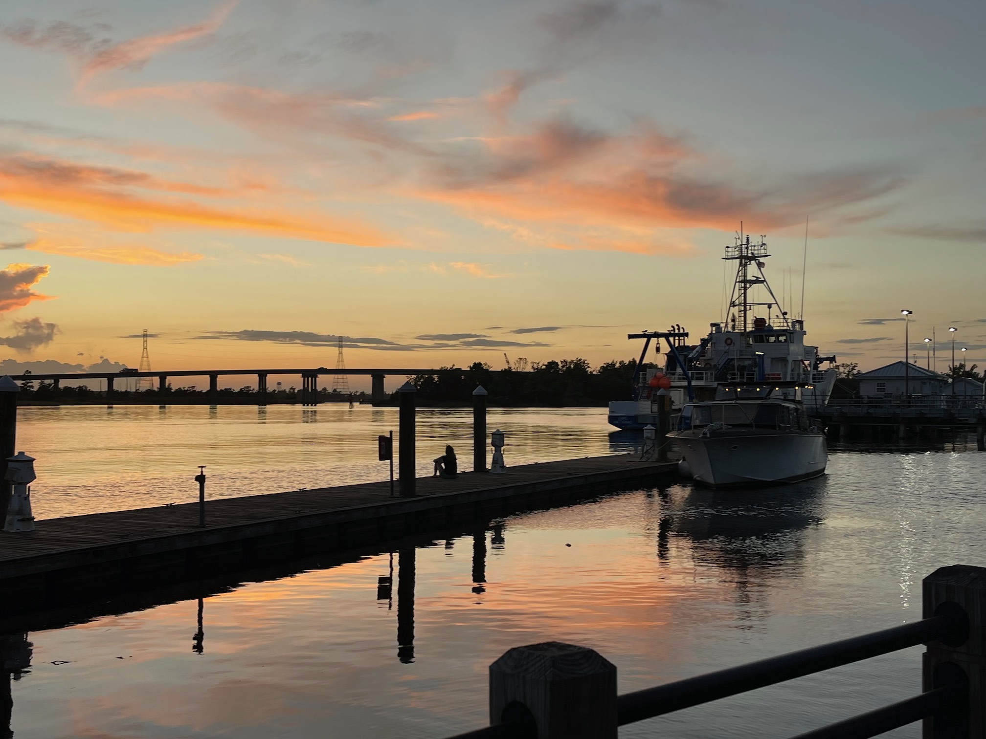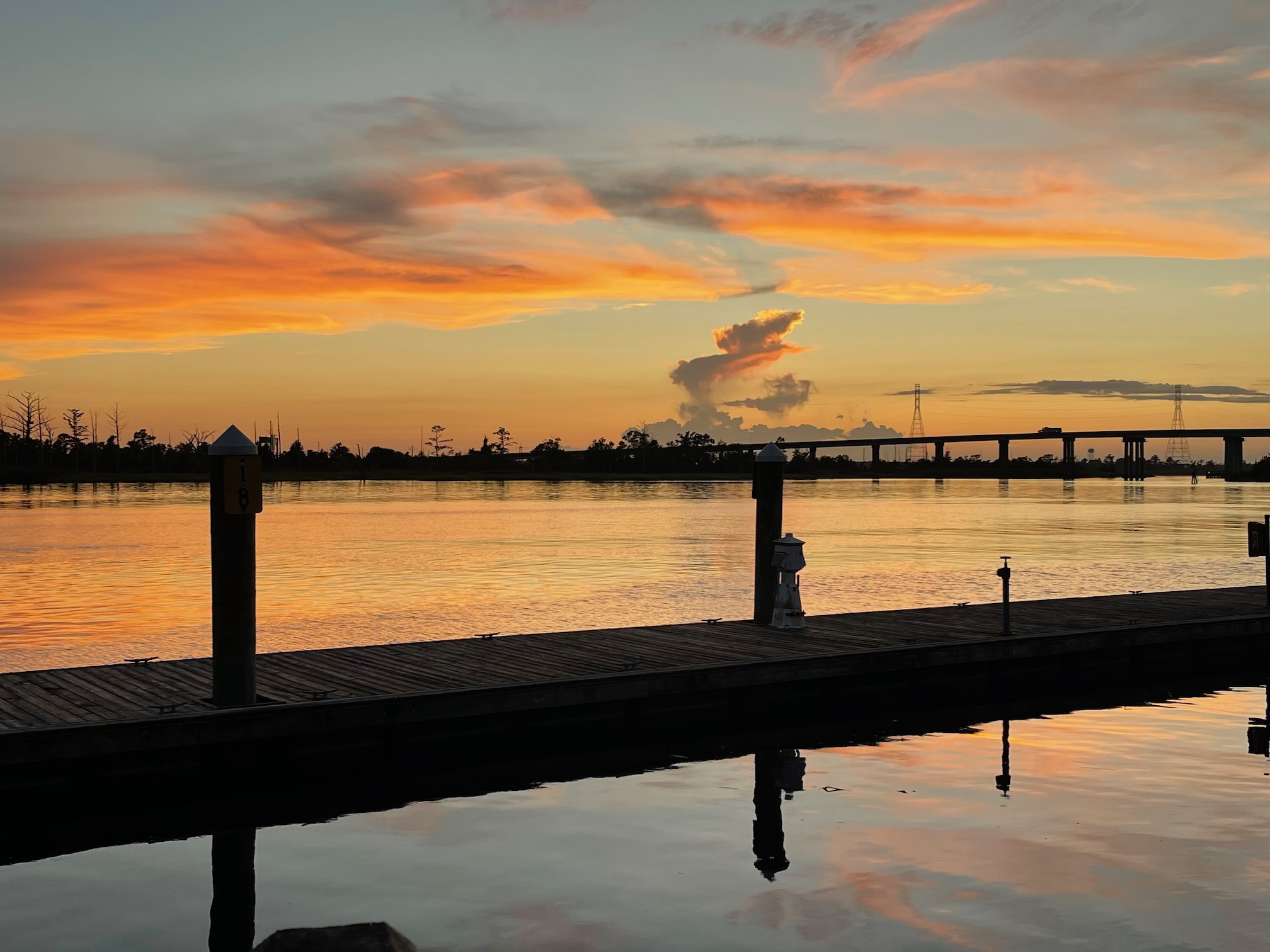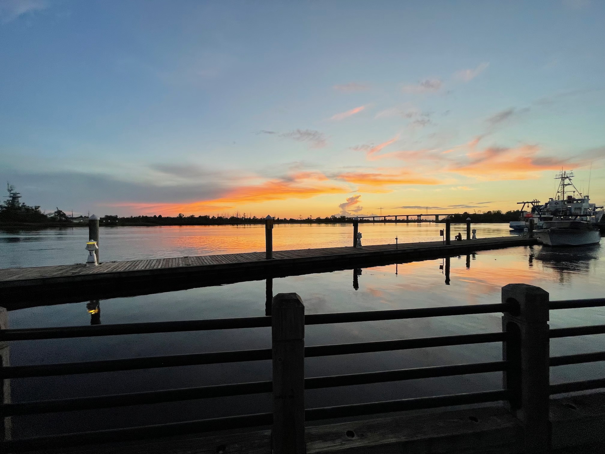 I will close this post with some photos that John took of the beautiful sunset on the river as we spent the early evening wandering the Wilmington Riverwalk: