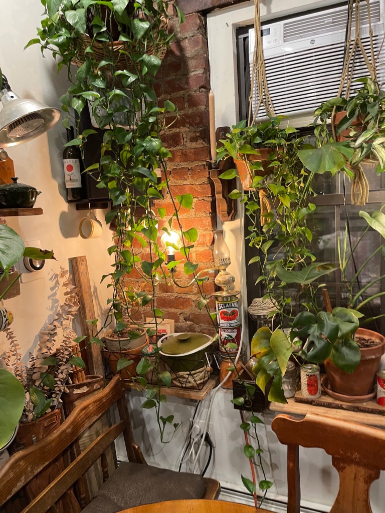 My sister got a room in a boutique hotel in Soho for Saturday night, so I treated us to a unique Airbnb stay in Brooklyn for Friday night. The owner is a curator of unusual antiques, vintage items and plants. It’s difficult to describe the place we stayed at but here are photos (and yes the late 20-something host/owner could be described as the “Ultimate Hipster“):