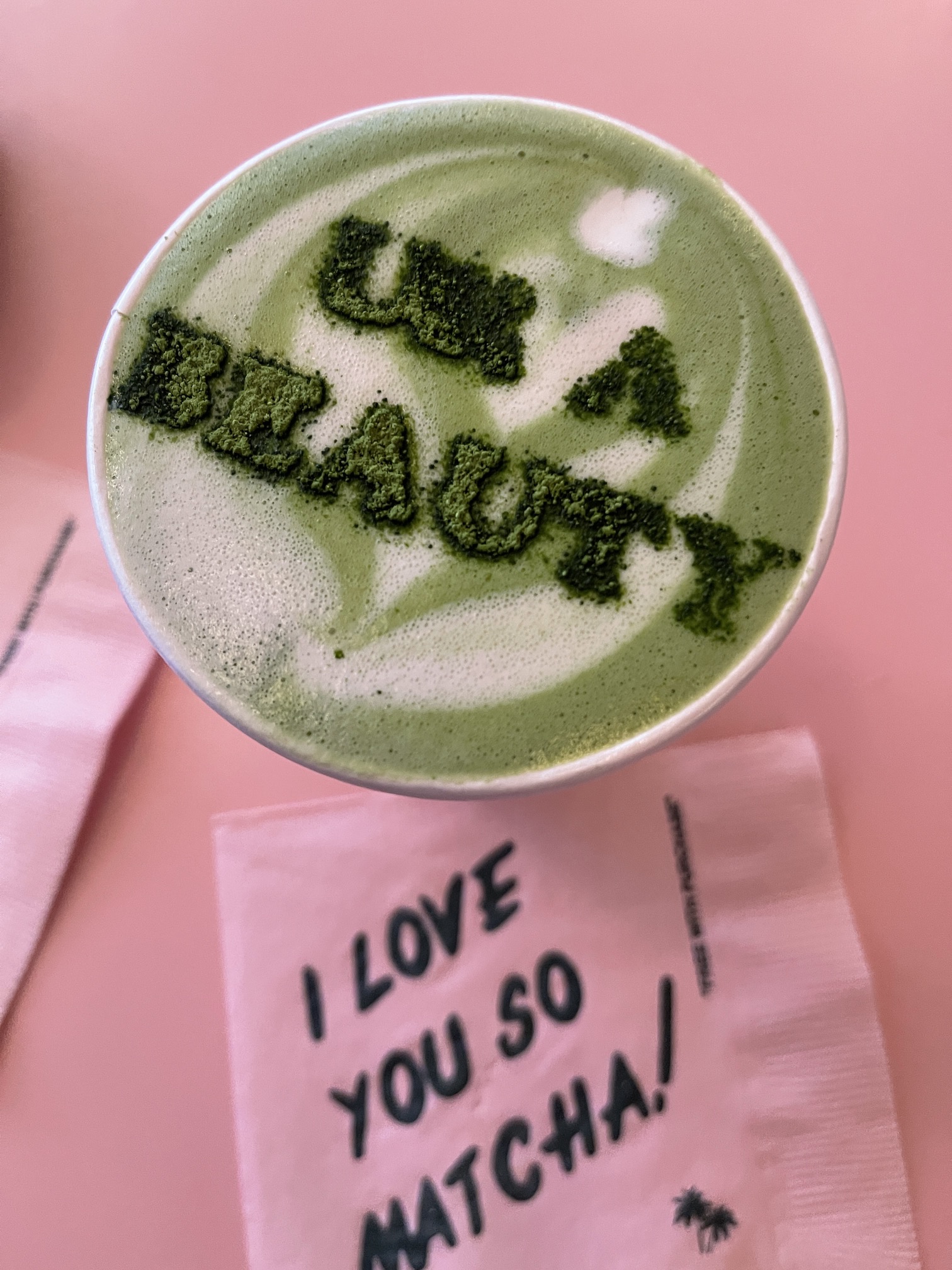 After having yummy gelato in Little Italy on Saturday after my first fashion show, we wandered around Soho and stop at a delicious little shop (Cha Cha Matcha) that specialized in green tea matcha and had green tea lattes with special messages from the barista: