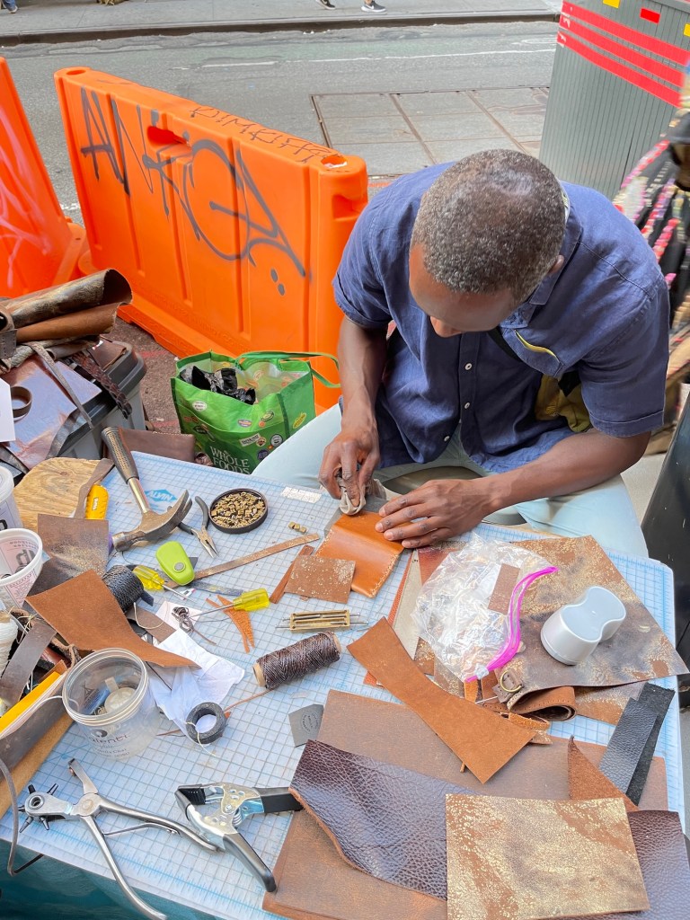 While walking around we stopped by a couple sidewalk vendors on the streets on NYC and spent time chatting with a lovely couple who made amazing little leather wallets. My sister bought one and we had it engraved. We enjoyed chatting with them so much we took photos: