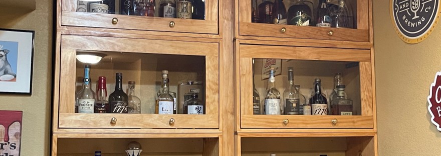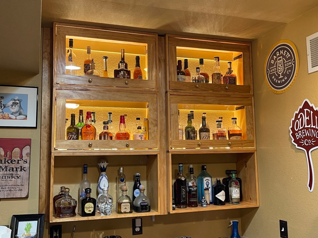 John has curated a nice collection of Whiskeys, Bourbons, Ryes, and Scotches including those he purchased during a Bourbon Tour of Kentucky he went on with his friends a couple years ago. Now he has a nice place to display them!