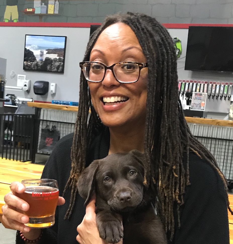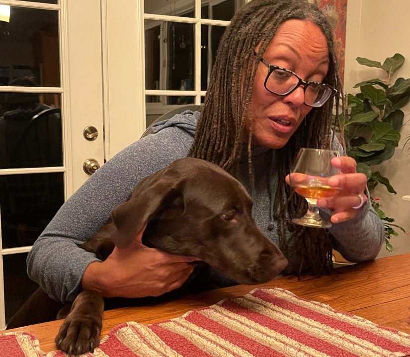 I’ll close this post with a sort of calmer photo of Riley from the trip – here I am attempting to do whiskey tasting while acknowledging Riley (and not both successfully)!