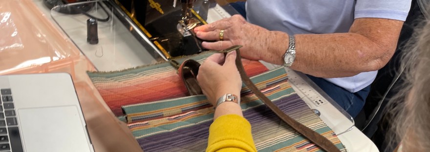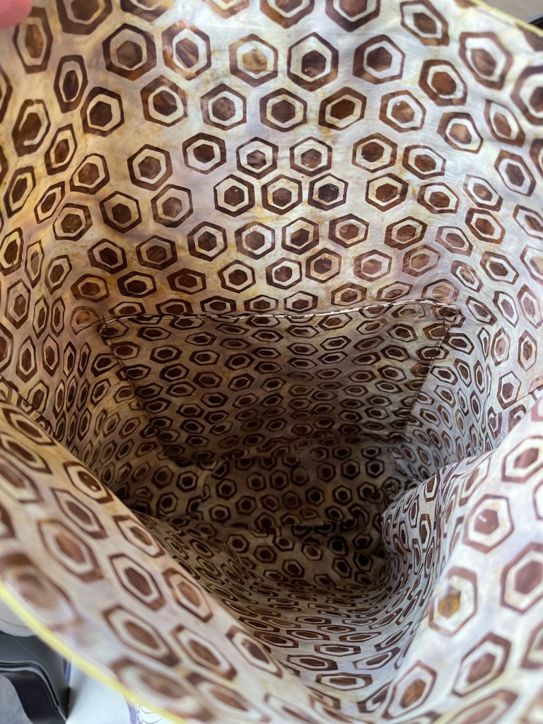 I had not properly prepared for class (I am out of practice of attending in person classes) but here is the main fabric for my backpack and the straps I was working on: