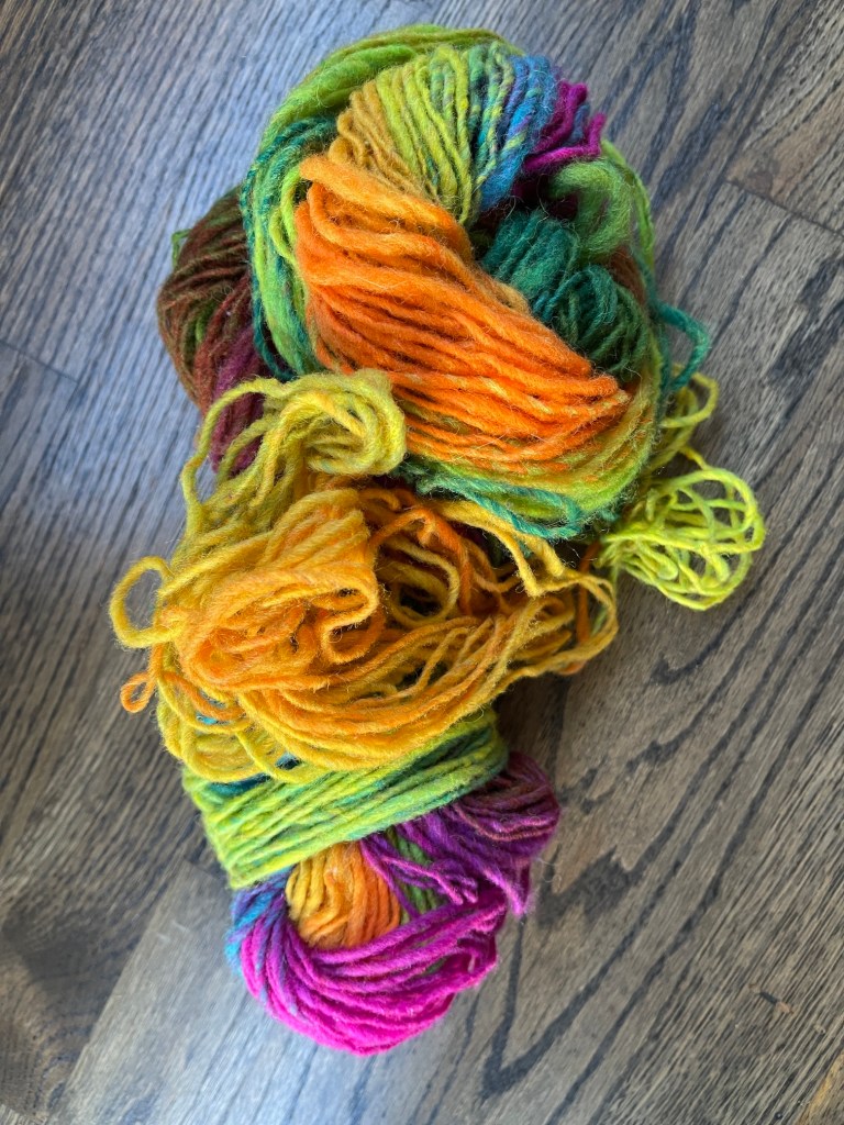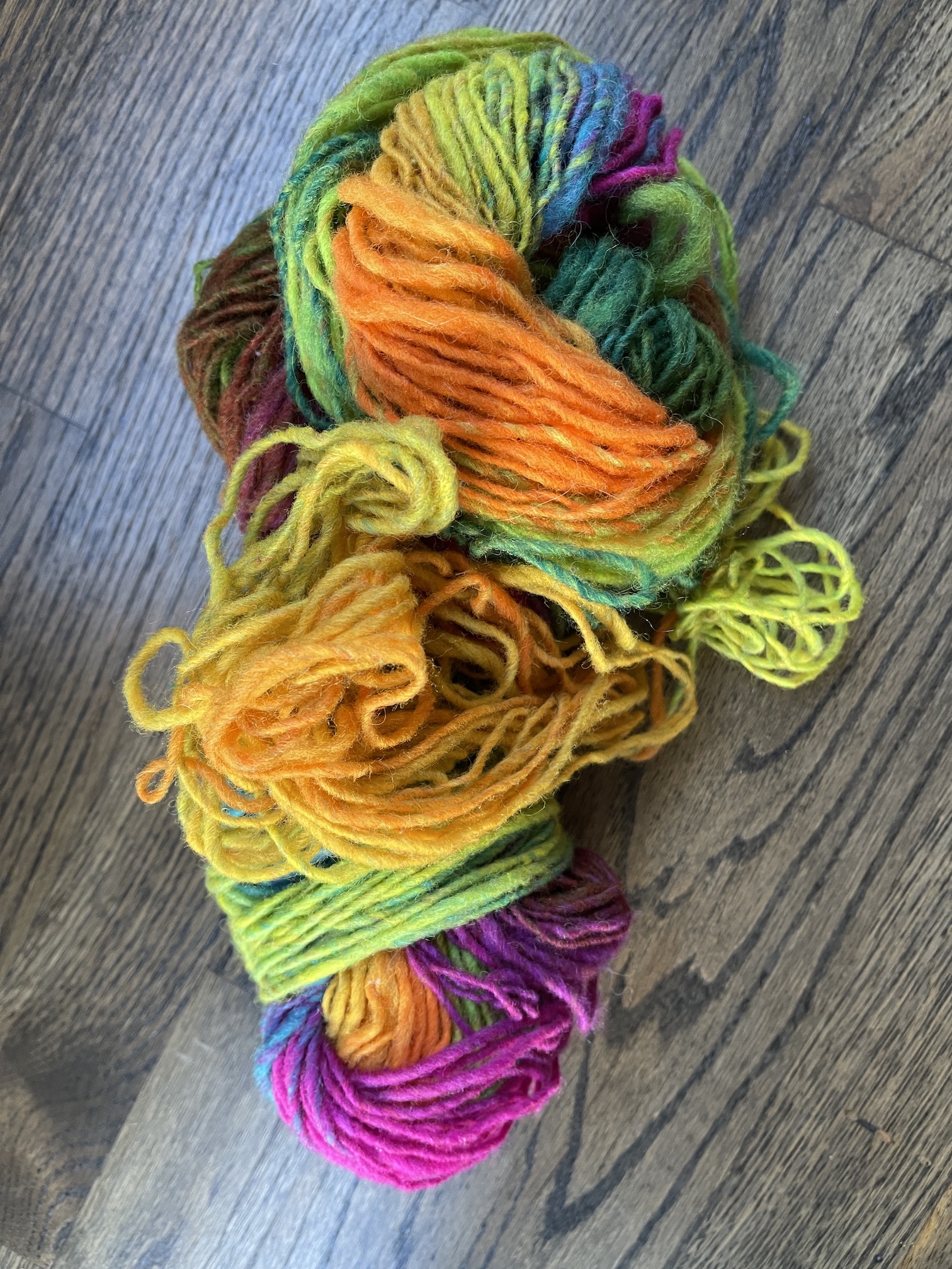 While rummaging through my yarn stash I came across this yummy “hot mess of yarn”, which appears to be two skeins of yarn: