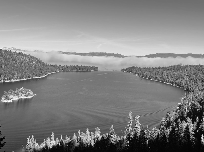 So here is my photo essay in B&W of my first visit to Lake Tahoe (and there was a cool fog/mist above part of the lake).