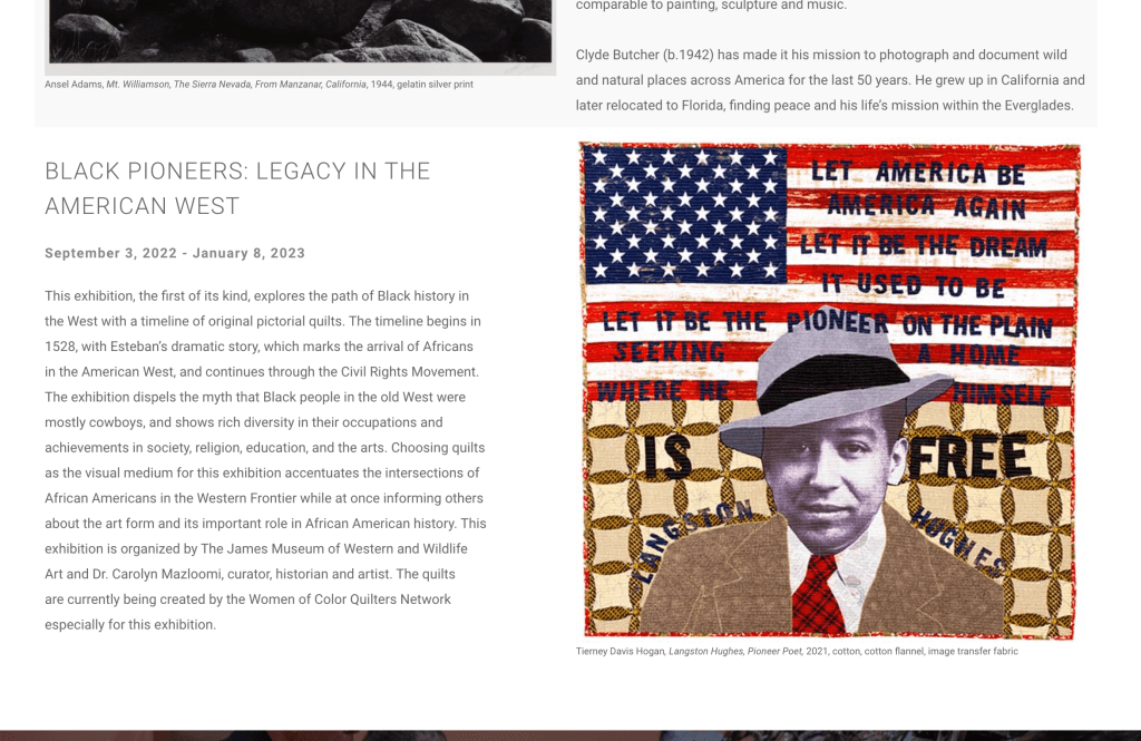 To my ecstatic surprise the museum contacted me a day or so later with the link to their listing of Special Exhibitions > Upcoming shows and my quilt was featured for the upcoming exhibit: Black Pioneers: Legacy in the American West!