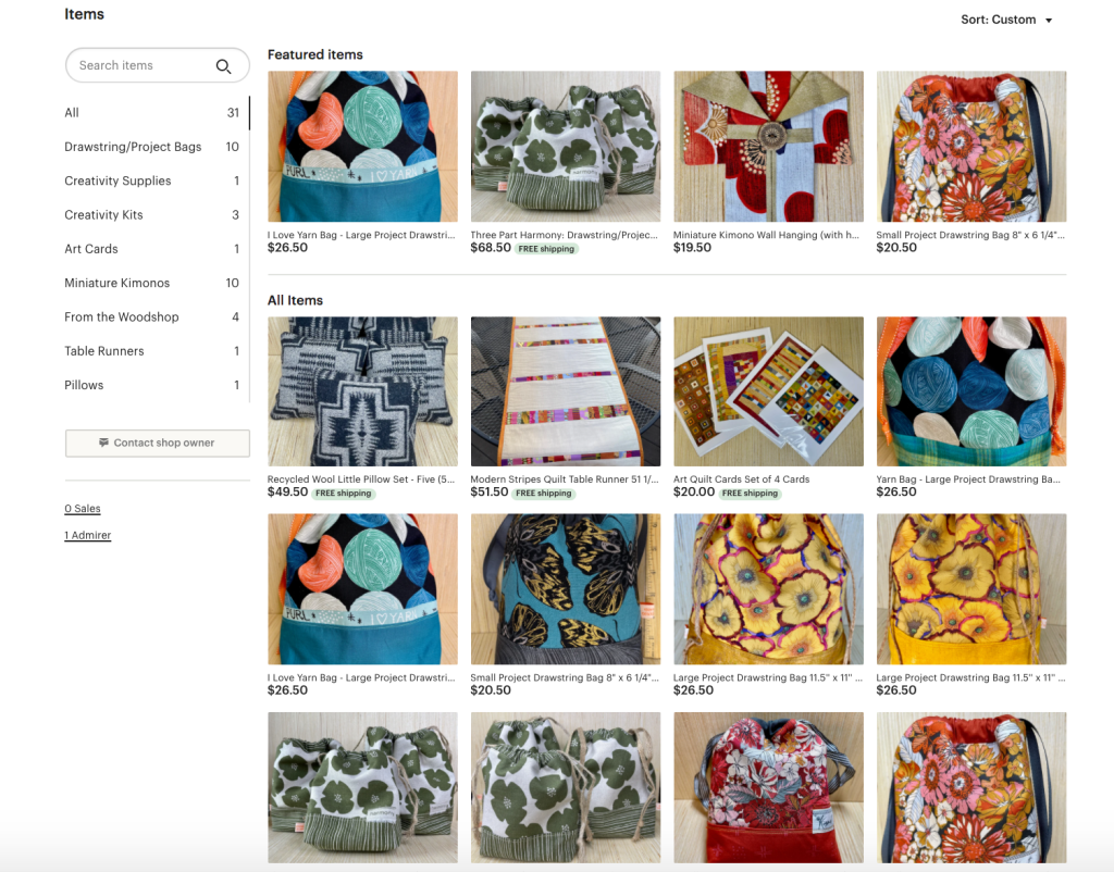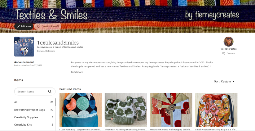 Here are some additional screenshots from the Textiles and Smiles Etsy Shop: