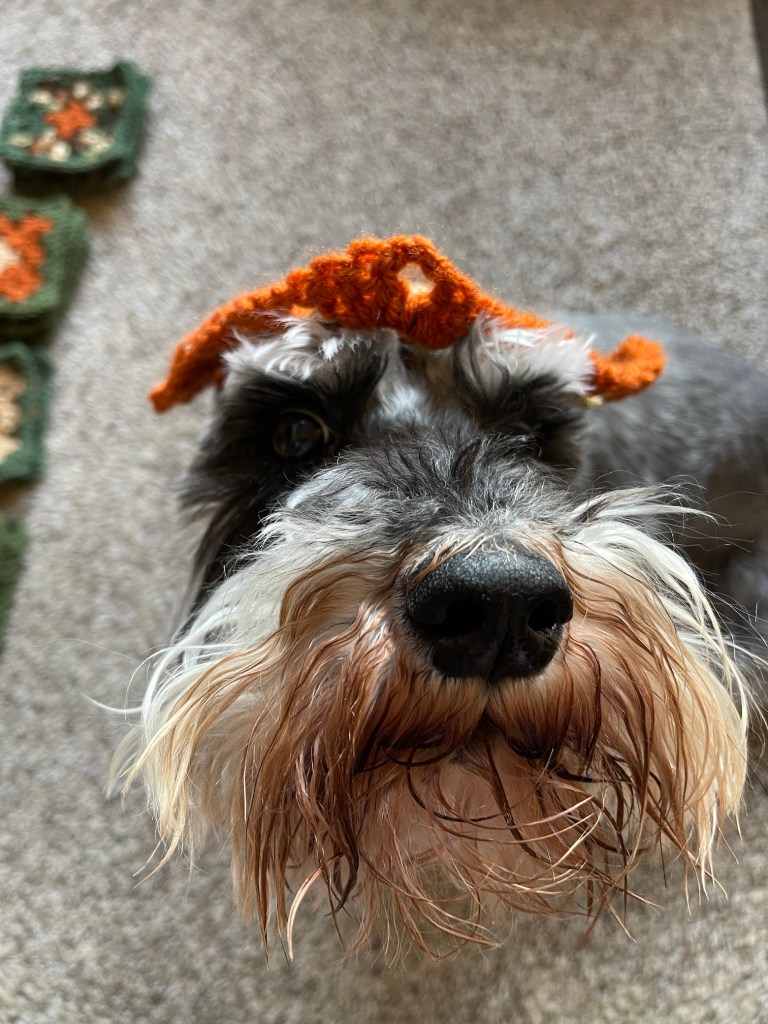So I decided it was time for him to try on a granny square hat: