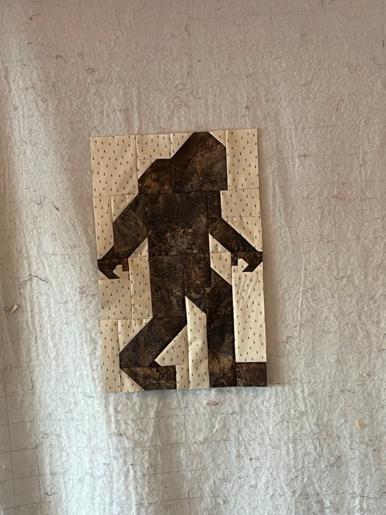 Here is her friend Dana’s Sasquatch in progress on the design wall at the retreat center: