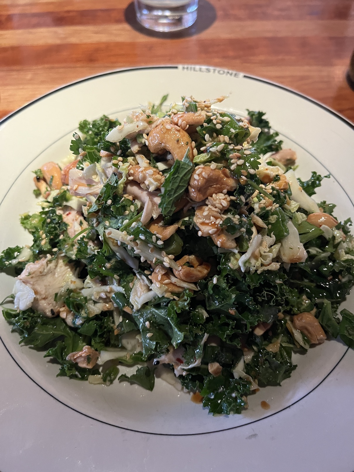 I did have a special treat last week – John took the knee scooter and I out to dinner at one of my favorite restaurants in Denver – Hillstone. I just had to take a photo of the delicious roasted chicken and kale salad (loaded with cashews) that I had for dinner. They do a beautiful job of preparing the kale so there is no bitterness just sweetness.