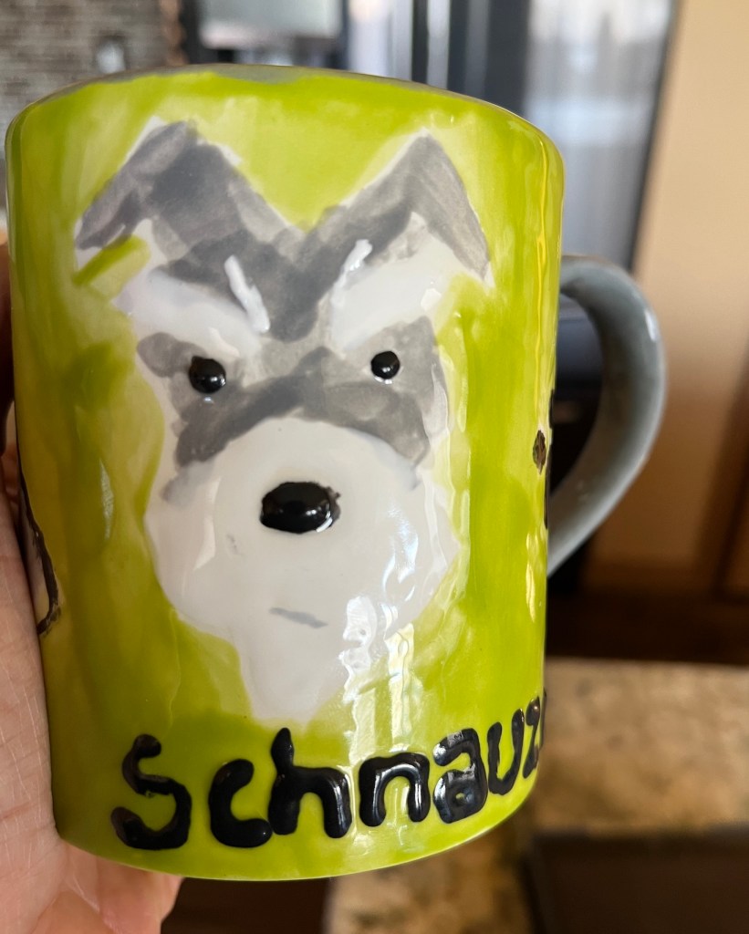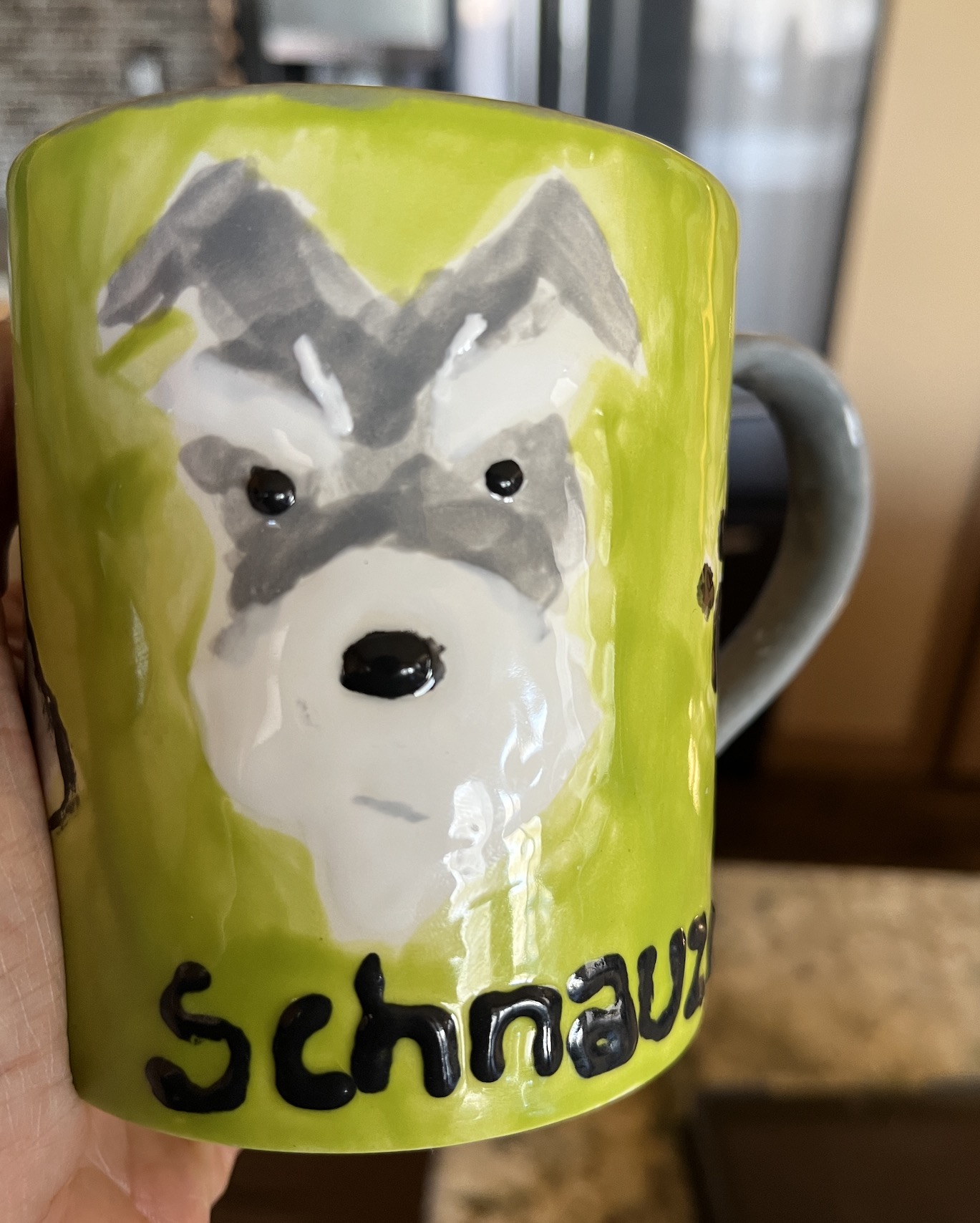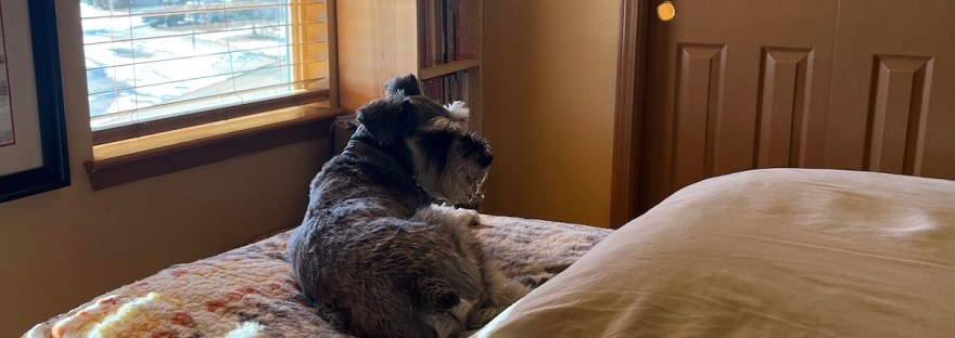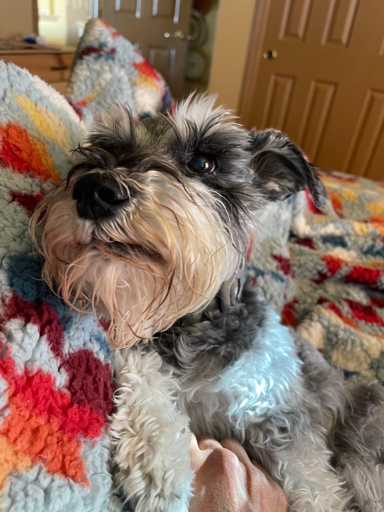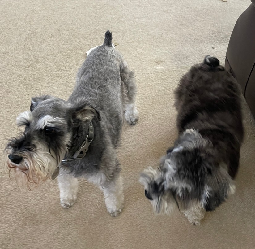I’ll close this post with some recent photos John took while over his Dad’s house of Mike and Goose, his father’s miniature Miniature Schnauzer (who needs a haircut but is so adorable!)