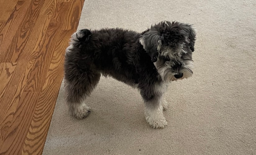 Here is Mike the Miniature Schnauzer checking out the new table: