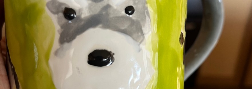 While John and I were purging our mega junk drawer and countertop area above the junk drawer which had become a hot bed of clutter, I was faced with making a decision on what to do with this mug that I created like 25 years ago in one of those “paint your own ceramics” classes we attended for a friend’s birthday party.
