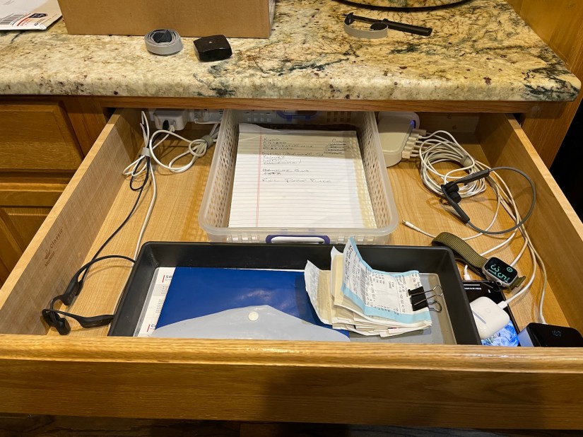 We spent this past Sunday doing a major purge of “the junk drawer” in our kitchen, discovering that most things could go elsewhere or be donated or tossed.