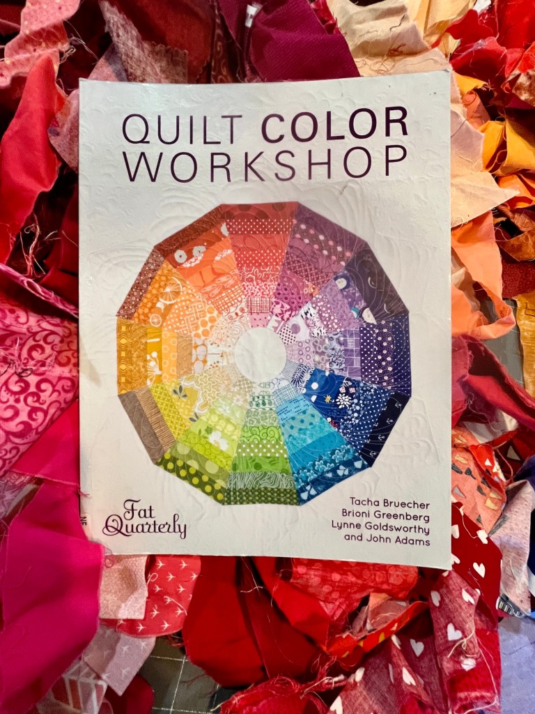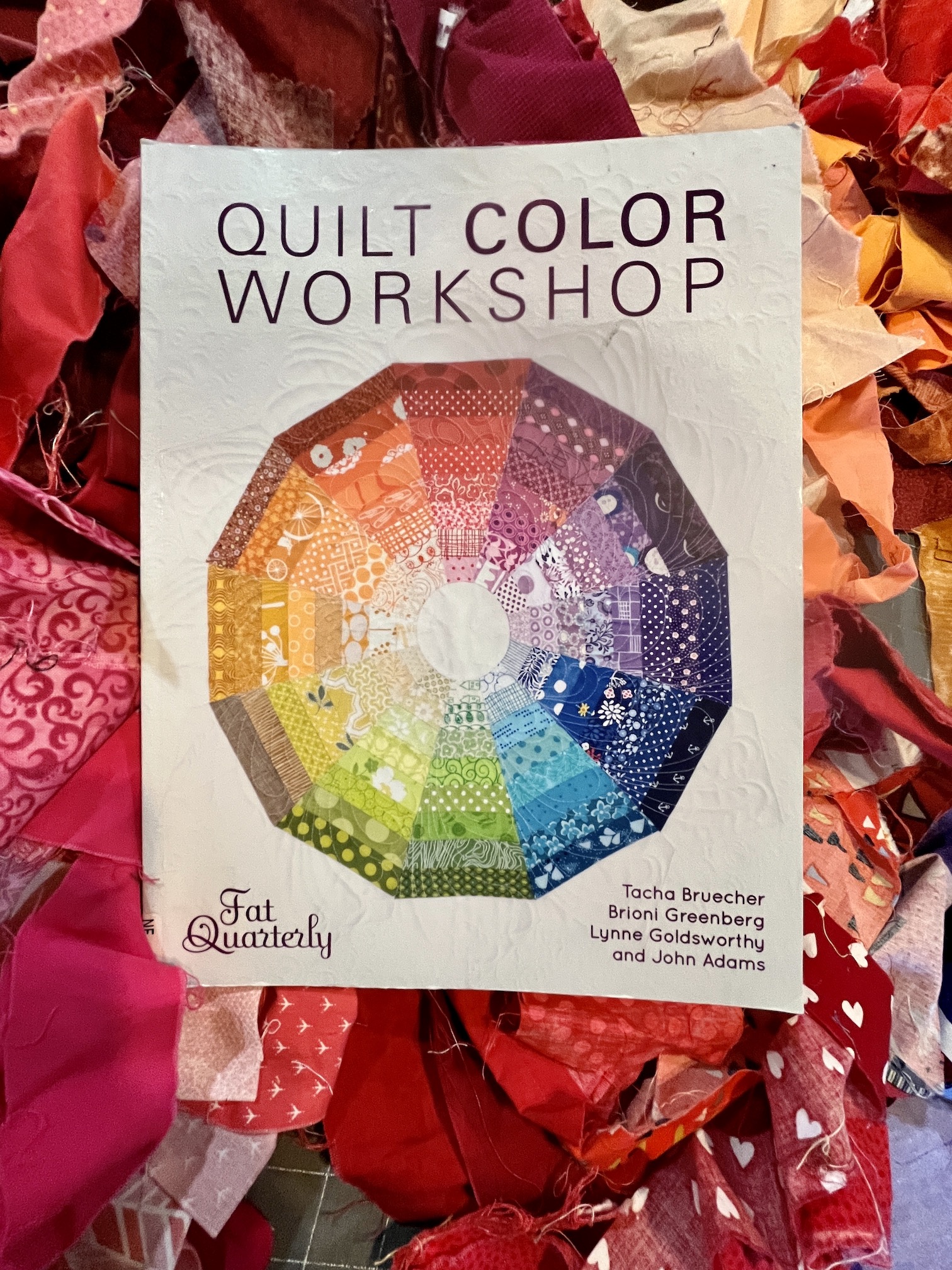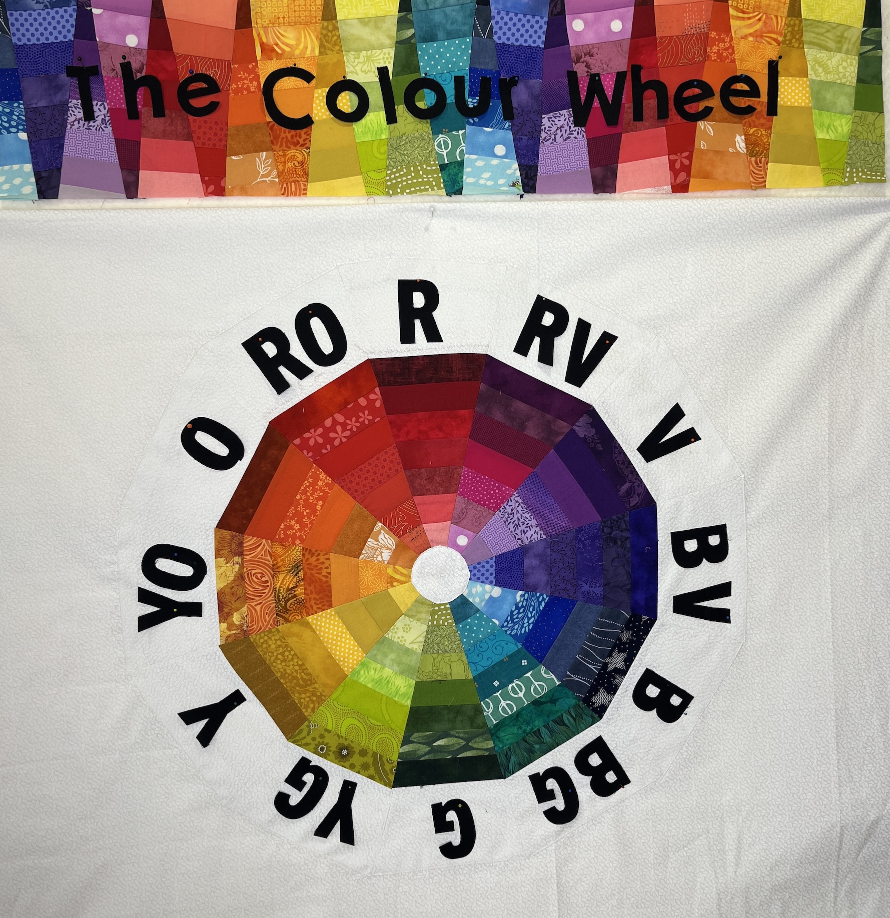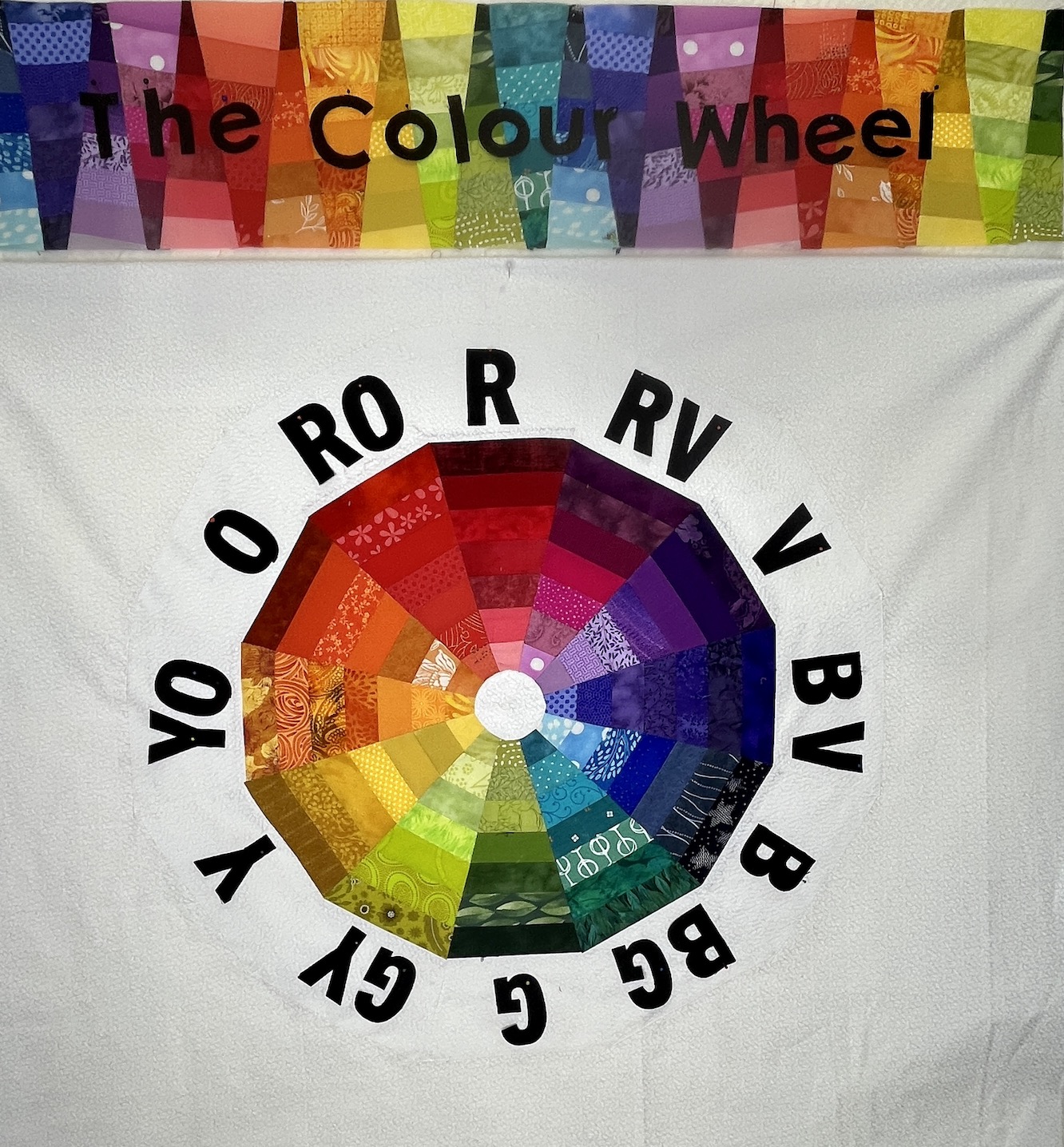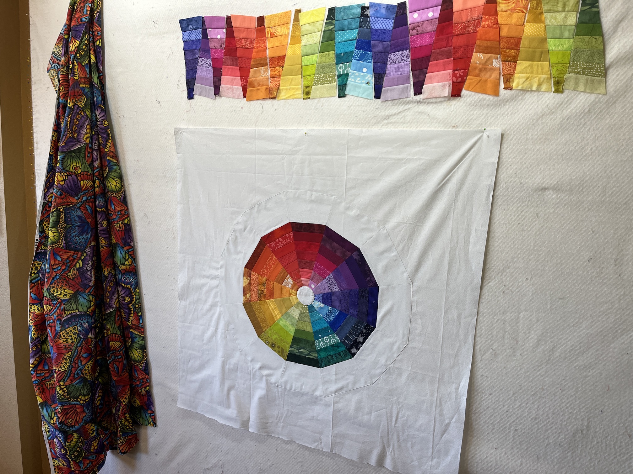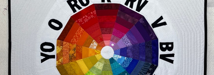 Here is an update on the Colour Wheel quilt/wall hanging that I am making as a teaching tool on color theory when I teach an art quilting course in 2024 (see post A Year of Finishes: The Pivot) using fabric scraps.
