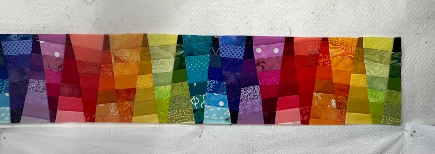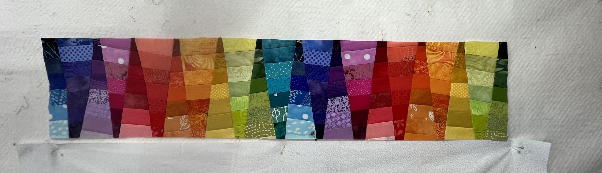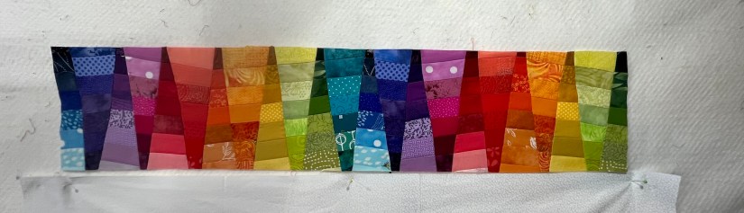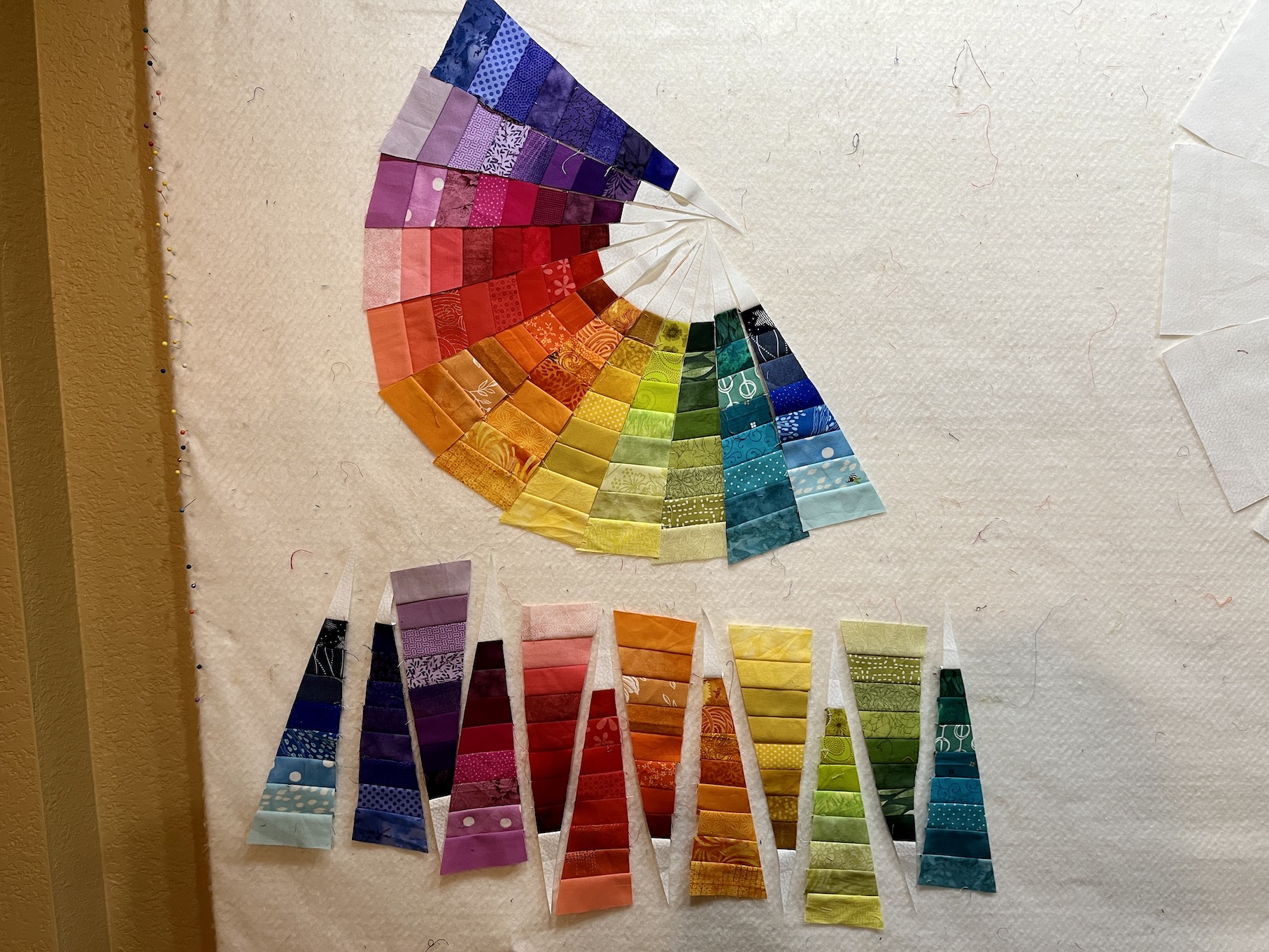 In my previous post on this quilt Colour Wheel” Quilt in Progress, I had a collection of 24 trimmings from making the “spokes” of the 12 sectioned color wheel and I was deciding what to do with them.