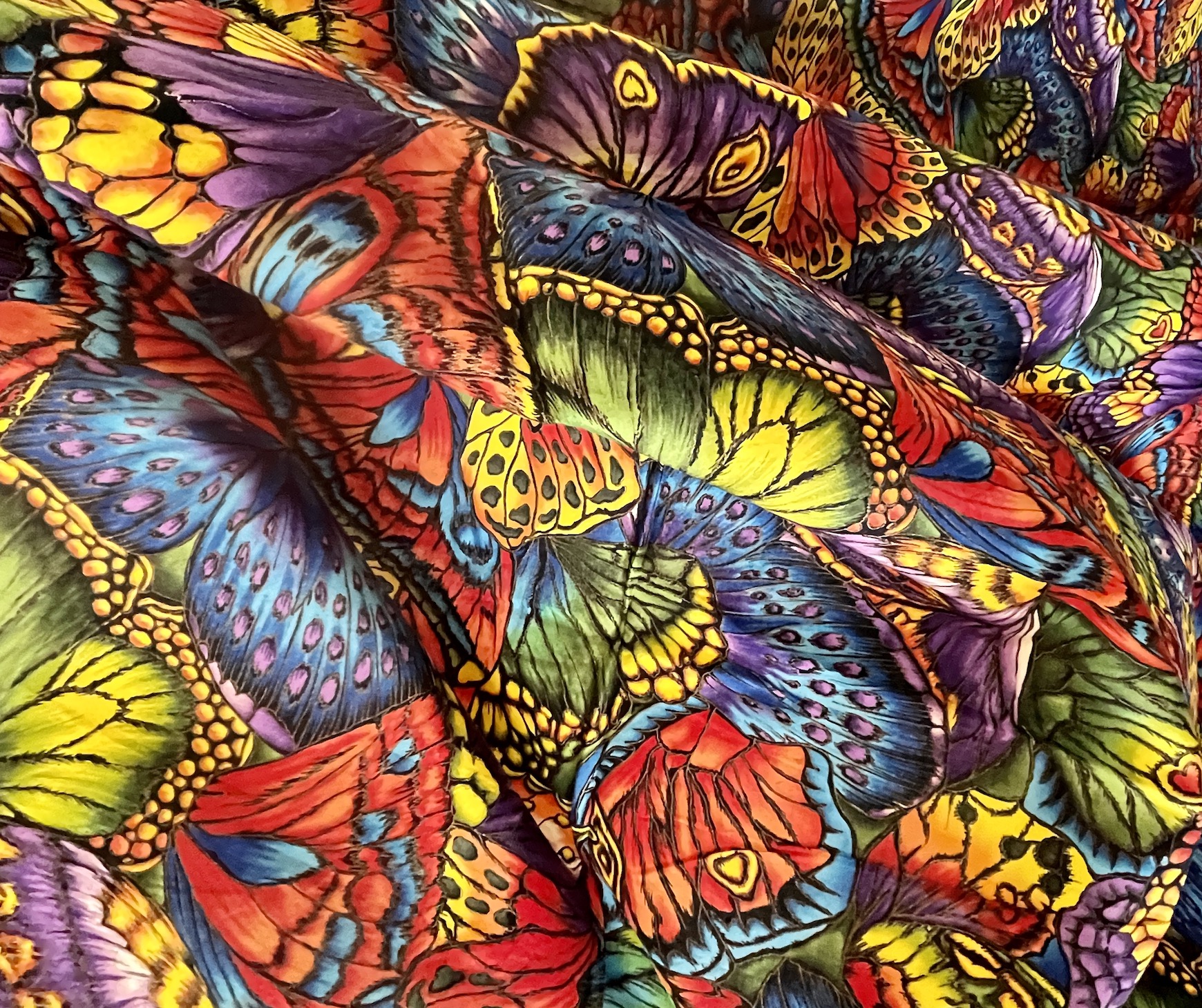 Before I get to that, let me show you the backing fabric I found in my stash for the quilt – a colorful butterfly fabric that had most of the colors from my the color wheel.